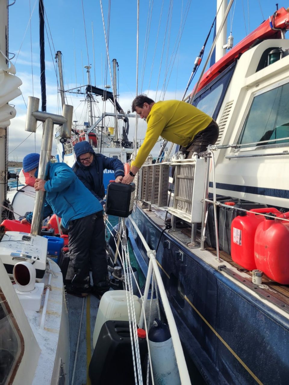 Das Tanken gestaltet sich komplizierter als erwartet. Wenn der Tankwagen an den Steg bestellt wird, um Diesel direkt in den Tank zu füllen, dann kostet dieser Service 500,- Kanadische Dollar, umgerechnet 350,- Euro. Die sind ja wohl wahnsinnig ! Das können sich vielleicht die Super-Yachten und Kreuzfahrer leisten, aber bestimmt nicht die kleinen Segler. Es gibt zum Glück eine Alternative. Wenn man Diesel in Kanistern selber ein- und umfüllt, dann bezahlt man nur einen Aufpreis von umgerechnet 42,- Euro dafür. Bedeutet jetzt für Thomas, die kostbare Flüssigkeit zuerst in unseren Haupttank zu schütten, bis der voll ist. Danach mit 25 leeren Kanistern zur Tankstelle, diese füllen und zurück damit zum Hafen. Von der Kaimauer über die Bellingshausen, die schweren Kanister über die Reling auf die Walkabout hieven und zum Schluss noch seefest verstauen. Eine Menge Extra-Arbeit, aber dafür haben wir viel Geld gespart. Die Anlieferung von Trinkwasser mit dem Truck kostet 100 Kanadische Dollar, etwa 70 Euro. Brauchen wir zum Glück nicht, weil wir bei Cape Hatt noch per Kanister unseren Wasservorrat aus der Natur aufgefüllt haben.