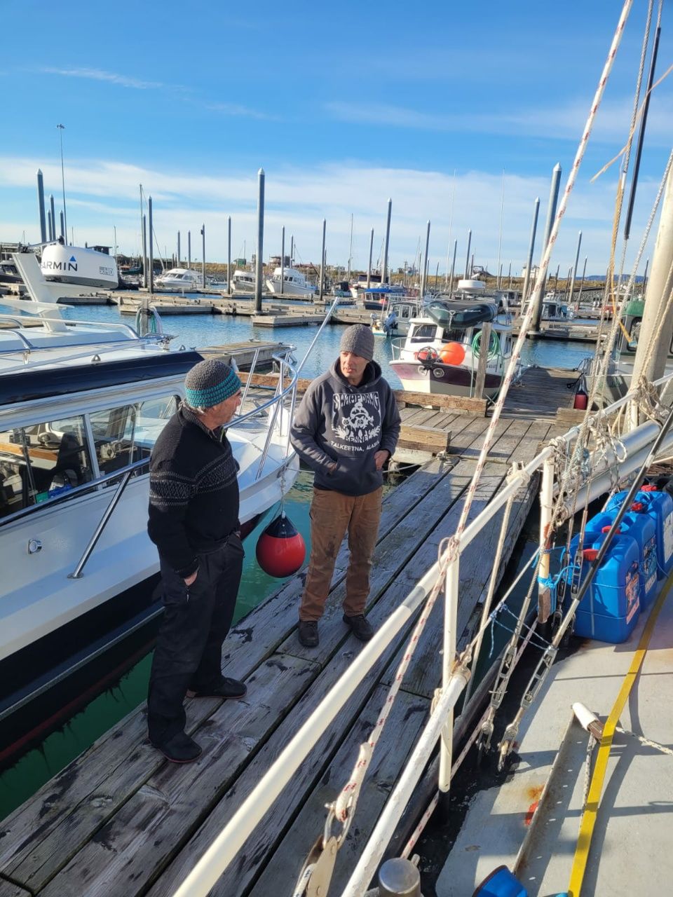 Der uns zugewiesene Liegeplatz ist ganz hinten in der letzten Ecke, schwierig einzuparken für einen Langkieler ohne Bugstrahlruder. Um uns herum lümmeln sich mehrere Seerobben im Wasser. Auch auf dem äußeren Steg liegen sie faul in der Sonne und stören sich nicht am Schiffsverkehr. Ein Segler, der in der Nähe an seinem Boot werkelt, nimmt die Leinen an. Das ist Jack, den sehen wir ab jetzt noch öfter. Er bietet uns beim Kennenlernen sofort seinen Truck an. Falls wir mal einen Wagen brauchen, dann können wir den gerne ausleihen. Super ! Dieses großartige Angebot nehmen wir doch gleich heute Nachmittag an, denn der halbe Tag ist bereits um. Bis in die Stadt sind es etwa 6 Meilen zu Fuß, also ungefähr 10 Kilometer für einen Weg. Wir laufen ja gerne, aber heute passt uns das nicht so gut. Wir möchten duschen und einkaufen. Viel wichtiger aber ist der Besuch bei Northern Enterprise, um einen Termin für den Kran zu bekommen. Der Manager Aaron macht einen sehr kompetenten Eindruck. Er trägt uns gleich für Mittwoch im Kalender ein. Wir sind froh, dass es so schnell geht.