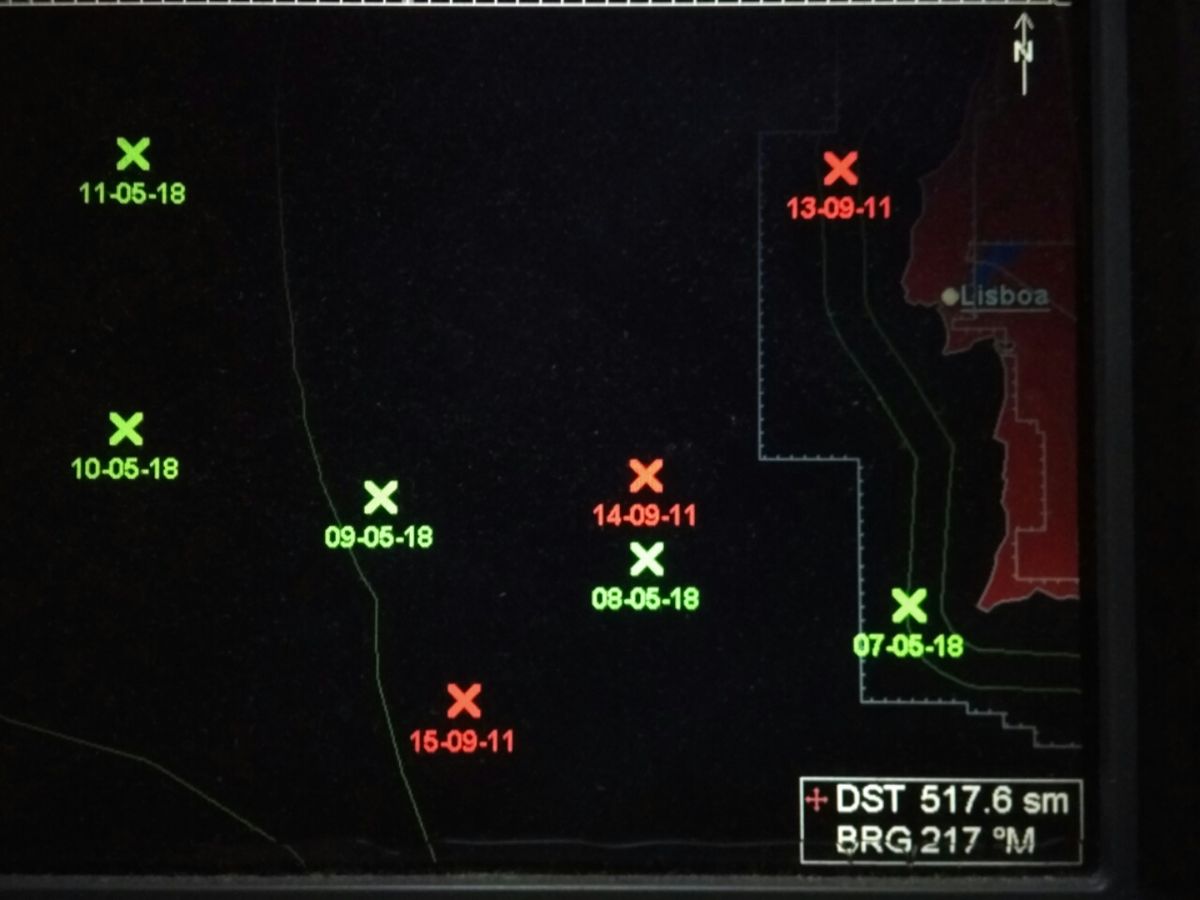 Erste Wache alleine, erste Nacht auf See mit dem neuen Schiff. An guten Schlaf ist natürlich noch nicht zu denken, weil sich der Körper erst auf den Rhythmus von Wache und Freiwache einstellen muss. Wir segeln mit 3-4 Knoten die portugiesische Küste entlang bis zum Cabo de San Vicente. Angenehm wenig Schiffs-Verkehr, nur wenige Lichter ziehen in gebührendem Abstand vorbei. Alles ganz entspannt. 🙂 Etwas zu entspannt, denn der Wind lässt uns im Stich. Wir werfen die Maschine an, da wir nicht so küstennah in der Flaute dümpeln wollen. 300 Liter Diesel-Kapazität im Gegensatz zu unserem früheren 70-Liter-Tank auf dem alten Boot …. da muss man nicht allzu lange drüber nachdenken. Wir haben keinen elektrischen Autopiloten, deswegen steuern wir die ganze Nacht von Hand. Eine gute Übung, denn am Ende der Nacht kann ich mit der ungewohnten Rad-Steuerung einwandfrei Kurs halten. 🙂