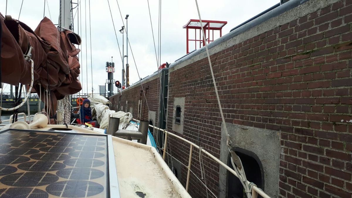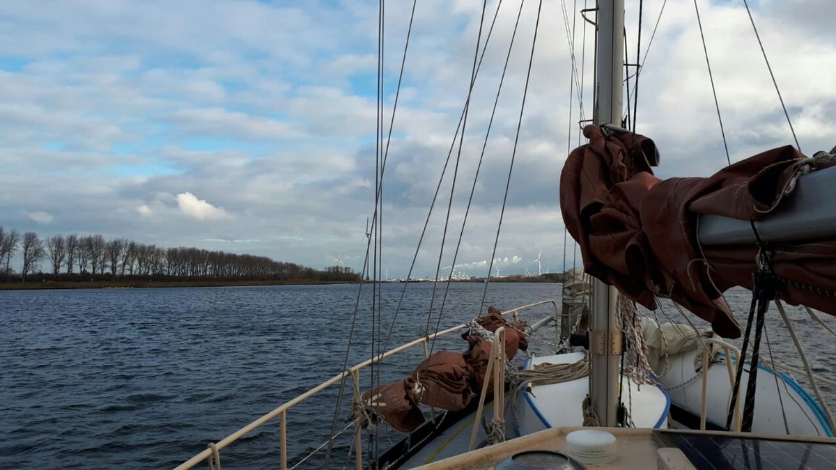 Mittwoch früh ist der ganz harte Wind durch. Leichte Bewölkung am Himmel, aber es ist deutlich heller als in den letzten beiden Tagen. 4° Celsius sind zwar nicht gerade warm, aber mit drei Schichten Kleidung erscheint es uns vergleichsweise mild. Motorfahrt heute bei guter Sicht und zeitweise sogar Sonnenschein. Gesteuert wird diesmal draußen mit der Pinne aus dem Cockpit heraus, was mir wesentlich vertrauter ist. Langsam tuckern wir durch den Kanal zurück in Richtung Ijmuiden, die flache Landschaft fließt vorbei. Thomas turnt auf dem Vordeck herum. Er näht einen Riss in der Fock, fädelt neue Reffleinen ein und bindet die Segel ordentlich an der Reling fest. Dann wird noch die Großschot-Führung optimiert sowie die Sicherungsleinen in einer besseren Position angebracht. Ein paar Schäkel werden festgezogen, einer verabschiedet sich dabei ins Wasser. Die Splinte und Wantenspanner werden dichtgeballert, das Rigg wurde mehrfach nachgestellt und soll jetzt seefest sein. Am frühen Nachmittag erreichen wir Ijmuiden und gehen ein kleines Stück vor der Schleuse bei einer Ansiedlung von Hausbooten an einem anderen Segler längsseits. Hier gönnen wir uns noch eine weitere Nacht ungestörten Schlaf. Morgen wird der Wecker früh klingeln, dann geht es durch die Schleuse und endlich richtig raus. Nachdem wir bereits zweimal auf der englischen Seite gefahren sind, haben wir diesmal beschlossen, uns an der französischen Küste entlang zu hangeln. Wir rechnen mit etwa 500 Seemeilen für die Passage bis Brest, wo wir eventuell einen weiteren Zwischenstopp geplant haben.