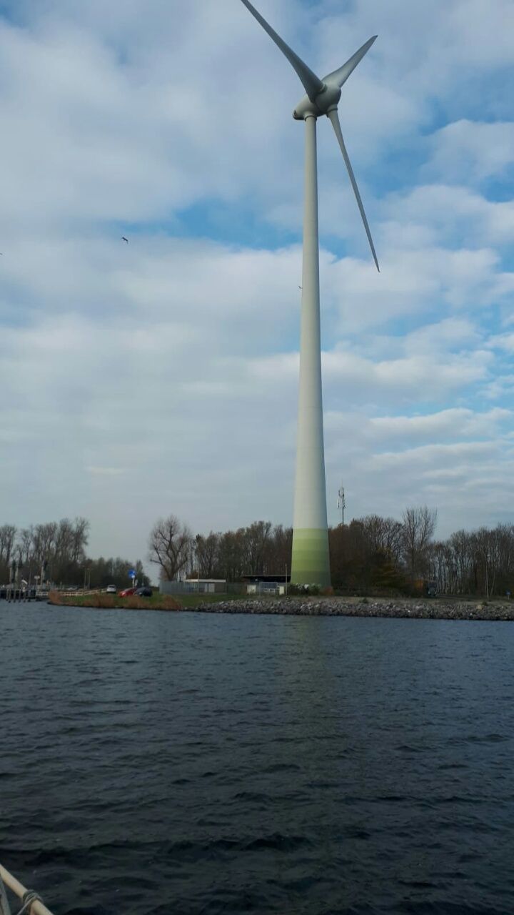In der Wind-Vorhersage für Montag und Dienstag ist die Rede von 30 Knoten und mehr aus Nord-Ost. Windstärke 7 sollte eigentlich kein Problem sein für unser Boot, aber das muss man sich ja nicht freiwillig aussuchen. Hier gibt es Gezeiten, Untiefen, Strömungswellen und viel Schiffsverkehr, all diese Faktoren, die das Segeln in der Nordsee so anspruchsvoll machen. Da können wir gut drauf verzichten. Schließlich sind wir jetzt so spät im Jahr gestartet, dass es völlig egal ist, wann wir auf den Kanaren ankommen. In der Marina von Ijmuiden hat man uns für einen Tag 29,- Euro abgeknöpft. Zu teuer für einen Hafen, der beinahe schon im Winterschlaf ist und nur schlechte Sanitäranlagen bietet. Wir beschließen, auf der Stehende-Mast-Route über die Kanäle das holländische Binnenland zu erkunden. Kartenmaterial und Wasserstraßen-Atlas sind an Bord. Thomas meldet die Walkabout über Funk bei der ersten Schleuse „Ijmuiden Lock“ an. Zusammen mit drei größeren Schiffen werden wir sanft abgelassen, es geht ganz langsam bergab. Kein Problem, die Sache macht Spaß. 🙂 Unter Motor tuckern wir ostwärts ins Landesinnere und bekommen einen ersten Eindruck von den Niederlanden. Leider keine frische Landluft, sondern sehr viel Industrie und Abgase. 🙁 Ich übe das Steuern mit dem Rad aus dem Deckshaus heraus. Die Sicht könnte besser sein. Unser neues Funkgerät läuft auf Kanal 16 mit, der Stromverbrauch ist erfreulich gering. Kurz vor Einbruch der Dunkelheit machen wir im Yachthafen Kokernoot kurz vor Amsterdam fest. Hier dürfen wir die Nacht für angenehme 11,- Euro bleiben, da wir keine Dusche und keine Elektrizität wünschen. Draußen heult und pfeift der Wind im Rigg, drinnen im Salon bullert der Refleks-Ofen vor sich hin. Wir machen es uns gemütlich und genießen den frühen Feierabend.