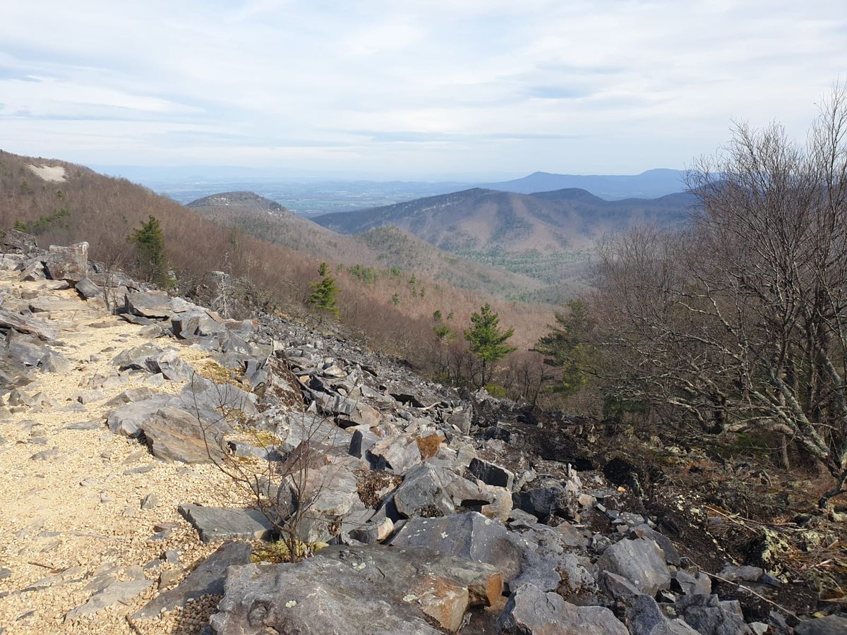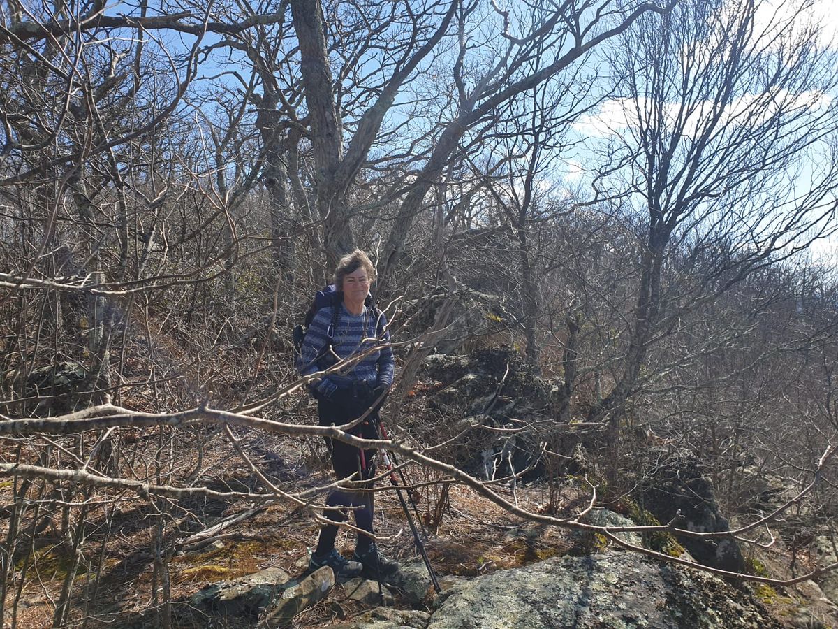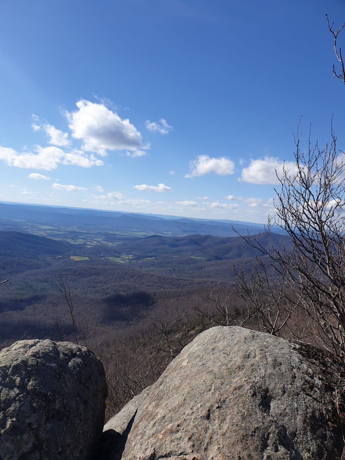 Wir beginnen unsere mehrwöchige Wanderung auf dem Appalachian Trail im Norden des Shenandoah Nationalparks. Es sind ungefähr 400 Kilometer bzw. 5 Stunden Autofahrt bis zum Eingang am Thornton Gap. Mit Bussen und drei Umstiegen hätten wir dafür 38 Stunden gebraucht. Öffentlicher Nahverkehr existiert in den USA so gut wie gar nicht oder ist so schlecht eingerichtet, dass er praktisch nicht nutzbar ist. Wir haben uns einen Fahrer organisiert, um zum Startpunkt zu kommen. Für 250,- US$ und eine Einladung zum Mittagessen bringt uns Fred mit seinem alten Dodge bis zum Trailhead. Von da aus steigen wir erst einmal tüchtig auf, das war klar. 😉 Virginia besteht aus Bergen mit Wald und Felsen. Hier oben im Norden ist der Frühling noch nicht angekommen. Bis auf 3280′ Fuß hoch geht es zum Mary’s Rock. Trockene, kalte Winter-Luft. Die Bäume sind noch total kahl, aber gerade deswegen eröffnen sich in jeder Kurve neue Aussichten. Wir sind total begeistert vom Appalachian Trail. 🙂 Pinnacles Picnic Area ist der erste Stopp, denn hier gibt es eine frostsichere Pumpe. Die ersten beiden Wasserspender waren wegen der Frostgefahr abgestellt. Drei Stunden später machen wir Feierabend. Wir haben unser Ersatz-Zelt mit, eine Nachahmung aus China. Das ist etwas kleiner, dafür 400 Gramm schwerer, aber als Kompromiss gar nicht so schlecht. Rattenkalt ist es ! Mücken, Zecken oder Schlangen sind kein Thema. Abends trinken wir noch zwei Tassen heißen Kakao zum Aufwärmen, dann verschwinden wir mit voller Montur im Schlafsack. Ich komme mir vor wie eine Mumie mit meinen vielen Kleidungsschichten. Oben herum vier langärmelige Teile, unten zur normalen Unterwäsche zwei Leggins, zwei Paar Socken, Handschuhe, Schaltuch, Kapuze. Während der Nacht ziehe ich noch ein drittes Paar Strümpfe an, außerdem meine Daunenjacke und die Regenhose drüber. Immer noch kalt. Die Füße fühlen sich an, als ob ich Frostbeulen bekomme, werden auch bis zum Morgen nicht warm. Und hart ist es, denn wir haben dieses Mal auf unsere Luftmatratzen verzichtet. Jetzt liegen wir auf den altmodischen Eierkarton-Matten von Thermarest. Die haben viele Vorteile, sind unkaputtbar, in jeder Pause schnell griffbereit und auch gut beim Packen als Unterlage zu nutzen. Es ist ein Experiment, wir wollten die Dinger mal wieder ausprobieren. 2012 auf dem AT sind wir damit sehr zufrieden gewesen, 2014 war ich damit noch einmal auf dem AT. Außerdem haben wir sie den halben Te Araroa benutzt, bis wir uns etwas mehr Komfort für den Rücken gewünscht haben und auf Luftmatratzen umgestiegen sind. Jetzt weiß ich auch wieder, warum. 😉 Herrje, was ist das unbequem ! Jaja, das Alter, da haben wir es wieder. Kann nicht schlafen, es drückt und zwickt in jeder Stellung. Dazu die Eiseskälte, weil unsere Schlafsäcke nur noch die Hälfte an Daunenfüllung haben. Die Temperaturen fallen bis unter den Gefrierpunkt. Erste Nacht also eher bescheiden …. Ich denke aber, wir müssen uns erst wieder eingewöhnen. Sind ja auch nur einen halben Tag gelaufen, also noch nicht so richtig müde.