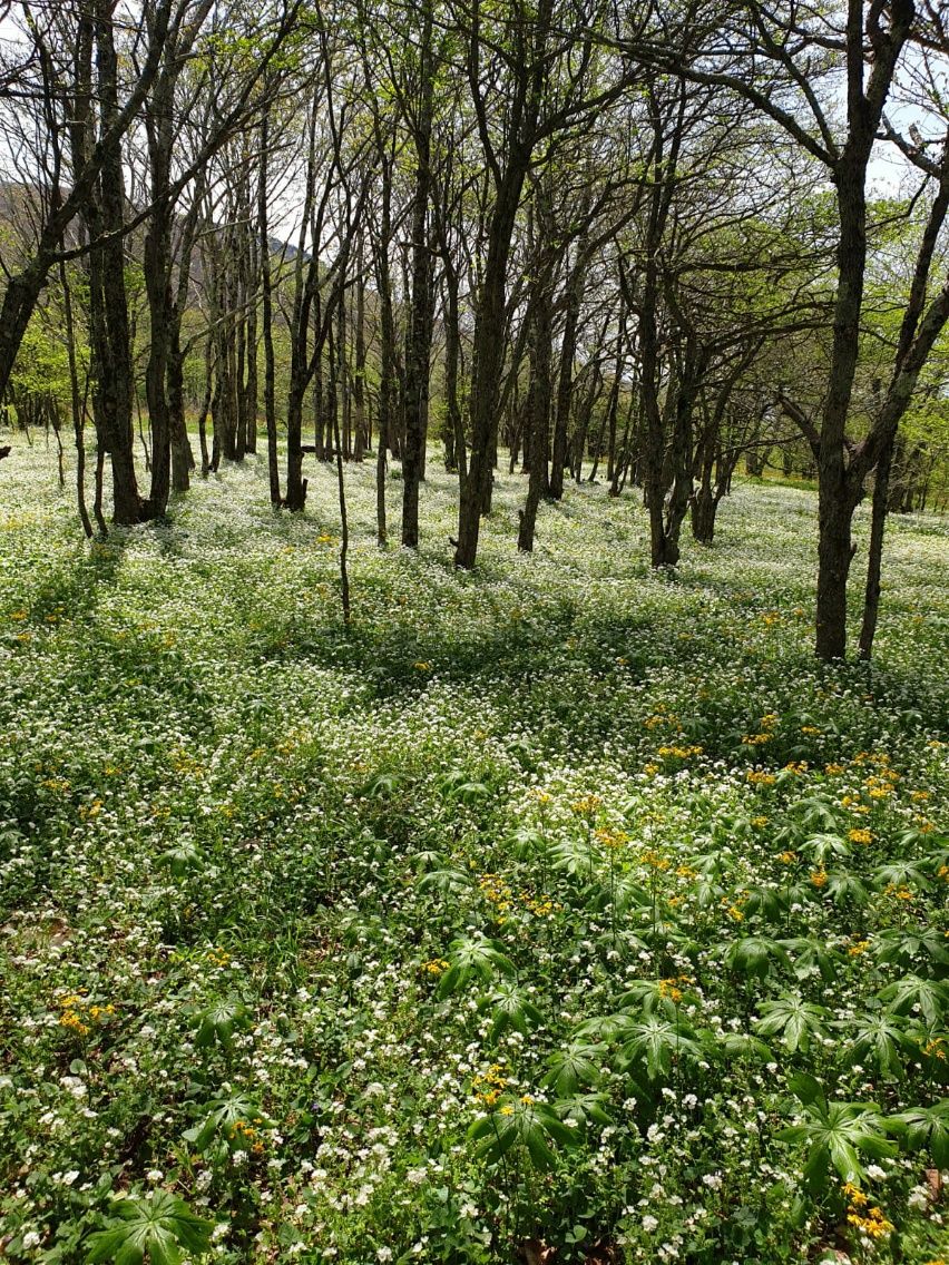 Danach liegen weitere 200 Höhenmeter Aufstieg zum Buzzard Rock vor uns. Fantastische Blumenwiesen zu beiden Seiten des Trails, es blüht in gelb und weiß zwischen den Bäumen. Wir können uns gar nicht sattsehen.