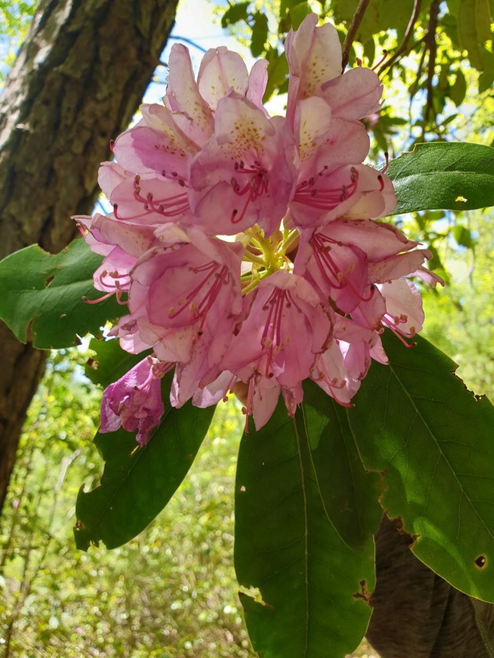 Danach führt der Trail etwas abwärts zum Rhododendron Gap. Leider keine Blüten, selbst die Knospen sind noch fest geschlossen. Auf 5400′ Fuß Höhe ist es wohl noch nicht soweit, dafür ist es oben zu kühl. Mount Rogers ist mit 5730′ Fuß der höchste Berg im US-Bundesstaat Virginia. Er gehört zur Gebirgskette der Blue Ridge Mountains. Zweimal bin ich bereits am Wegweiser vorbei, ohne auf den Mount Rogers zu klettern. Heute passt es gerade. Wir liegen gut im Schnitt mit unseren verbliebenen Meilen, es ist erst Mittagszeit, blauer Himmel und Sonnenschein. Wir stellen die Rucksäcke am Wegweiser ab und wandern ohne Gepäck einen Umweg von 2 Kilometern. Es geht auf einem matschigen Pfad steil bergauf. Faszinierender Urwald, dunkel und verwildert. Nach einer halben Stunde landen wir in einer Sackgasse. Zwei Männer stehen dort und unterhalten sich darüber, dass dies ein merkwürdiger Gipfel ist. In der Tat …. Es gibt kein Zeichen, kein Gipfelkreuz, kein Register, noch nicht einmal Aussicht zu irgendeiner Seite. Der Weg endet an einem Felsen, der ringsum von Bäumen umgeben ist. Keine Spur führt irgendwohin weiter. Zu allen Seiten geht es nur noch bergab. Dann muss dies wohl tatsächlich der Gipfel sein. Einer der Männer hat Handy-Empfang und lässt sich den genauen Standort anzeigen. Wir stehen tatsächlich auf dem Mount Rogers, dem höchsten Berg Virginias. Diesen Gipfel hatten wir uns etwas anders vorgestellt, da muss man nicht nochmal hoch. Aber der Weg ist das Ziel – das ursprüngliche Waldstück war wirklich schön. 😉