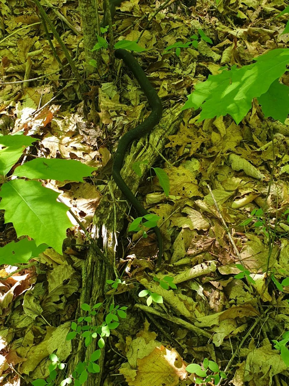 Wir sind froh, wenn wir im Halbschatten der Bäume wandern können, denn in der Sonne ist es fast zu heiß. Thomas pfeift mich zurück, weil er eine ausgewachsene Black Racer entdeckt hat. Ich bin dran vorbei, ohne sie gesehen zu haben. Die ist wirklich groß und dick, wir schätzen ihre Länge auf 2 Meter und mehr. Ungiftig. Die Black Racer macht nichts, obwohl ich sie mit kleinen Stöckern ärgere und versuche, etwas Bewegung zu filmen. Langweilige Schlange. 😉