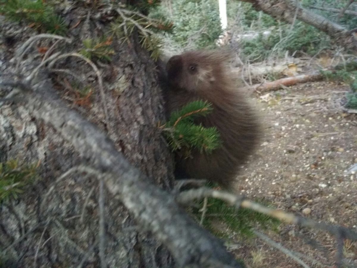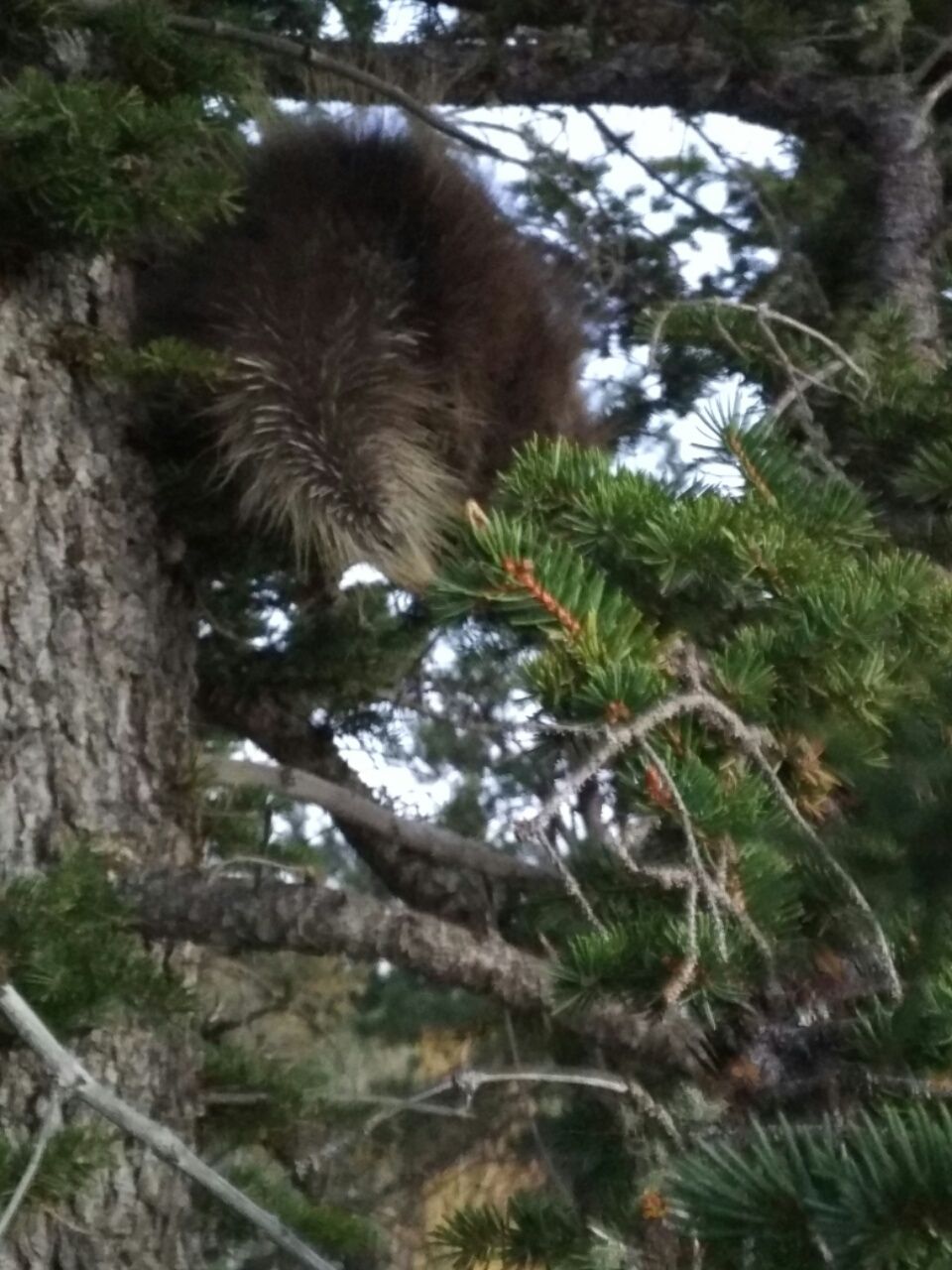 Was für eine grandiose Kulisse ! Unser Zelt steht am tiefsten Punkt im Grand Canyon. Gleich neben uns rauscht der Bright Angel Creek. Die Nacht war richtig warm. Unsere Nachbarn beginnen schon mit dem ersten Tageslicht zu rumoren. Kein Problem, da wir gestern bereits um 20.00 Uhr im Schlafsack gelegen haben. 🙂 Die Beine zwicken ordentlich. Zwei Wochen nach Beendigung des CDT sind wir solche harten Tage nicht mehr gewöhnt. Heute geht es auf dem North Kaibab Trail raus aus der Schlucht. Wir starten früh, denn noch sind die Temperaturen angenehm. Die Cafeteria der Phantom Ranch lassen wir wieder links liegen. Bereits um 9.00 Uhr morgens knallt die Sonne in den Kessel. Nach knapp 3 Stunden kommen wir am Cottonwood Campground an, wo es Trinkwasser aus der Leitung und Picknick-Tische im Schatten gibt. Haferflocken-Pause. 😉 Bis hierhin haben wir ungefähr ein Viertel des Aufstiegs hinter uns, 1350 Höhenmeter liegen noch vor uns. Nach weiteren 5 Stunden ist es geschafft. 🙂 Ging ganz gut, aber jetzt reicht es auch. 😉 Am Trailhead treffen wir nochmal auf die junge Frau, mit der wir uns eine Nacht den Platz geteilt haben. Von da aus fahren wir direkt zum General Store für Kaffee, Eis und Internet. Wir erfahren den Grund für die Halbmast-Beflaggung : In Las Vegas ist ein Irrer Amok gelaufen und hat 59 Menschen erschossen. Er selbst nahm sich das Leben, kurz bevor die Polizei sein Zimmer stürmte. 🙁 Wir gönnen uns zum Abschluss eine Dusche, richtig gut und sauber, nur 1,50 Dollar für 6 Minuten. Am frühen Abend verlassen wir den Grand Canyon National Park, um uns einen freien Zeltplatz im Wald zu suchen. Auf dem Weg dahin sehen wir einen Baumstachler, der scheinbar orientierungslos neben der Straße läuft. Als ich zum Fotografieren aus dem Auto steige, wird er aber sehr schnell und rennt in Richtung der Bäume davon. Ich eile hinterher und kann noch ein paar Bilder knipsen, bevor das Stacheltier hoch in der Baumkrone verschwindet.