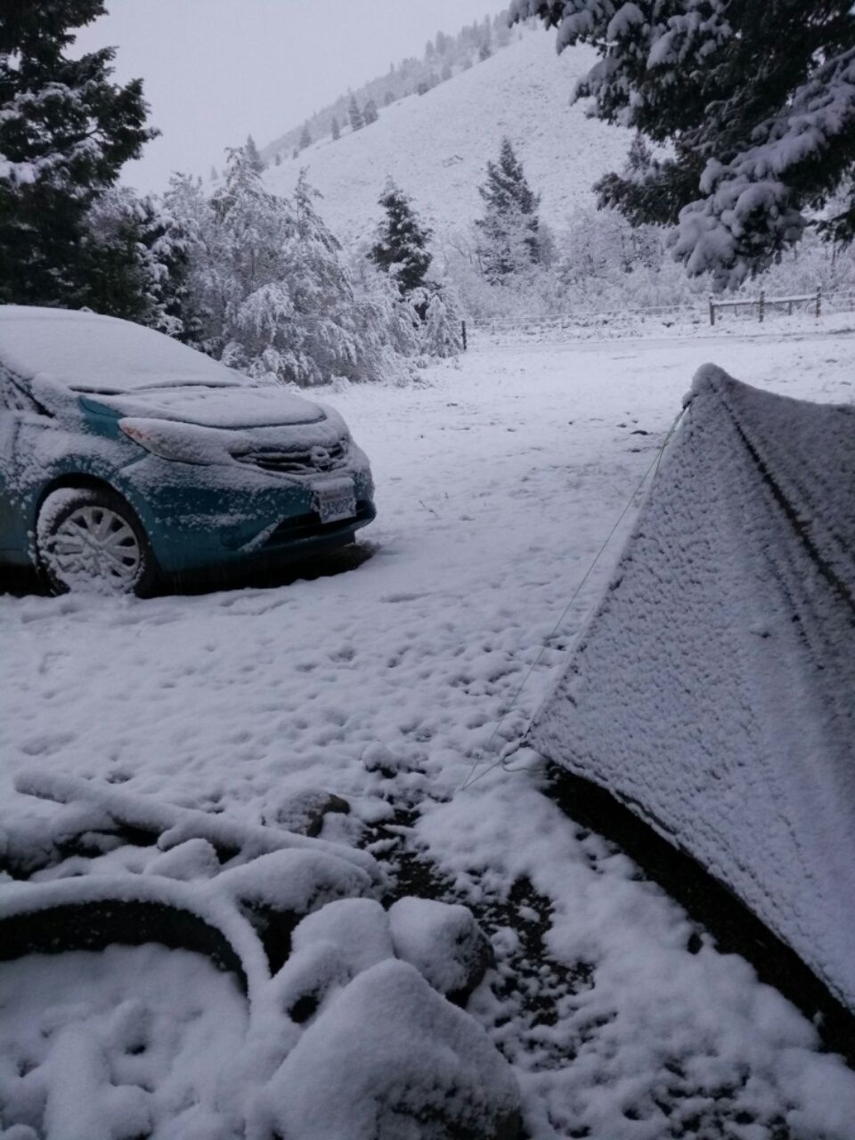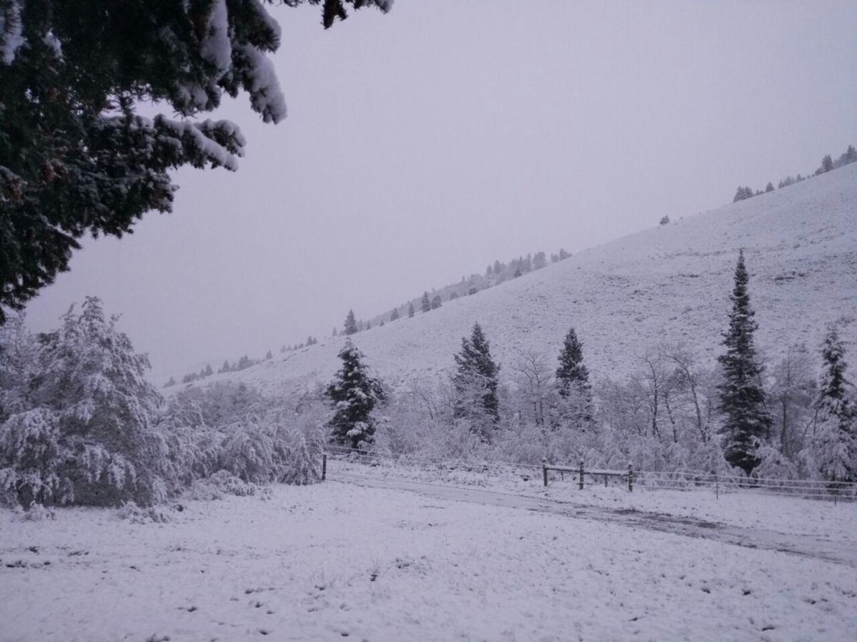 Unheimlich ruhig war es in der Nacht. Ganz leise konnte man hören, wie sich immer mehr Schneeflocken auf unser Zelt setzen. Morgens haben wir eine wunderschöne Aussicht auf einen Winter-Wunder-Wald. Alles ist weiß, die Äste der Bäume sind tief nach unten gebogen unter ihrer Last. Auf den Feldwegen lässt es sich trotzdem gut fahren. Ein Glück ! 🙂 Unser Nutella ist zwar nicht gefroren, aber immerhin so hart, dass man es wie festen Käse in Scheiben schneiden kann. 😉 Schneller als erwartet passieren wir die Grenze von Montana nach Idaho. Der Tag ist grau, von Regen bis Schnee ist alles dabei. Wir nutzen das trübe Wetter und klappern etwa ein Dutzend Läden ab. Ist ja auch plötzlich viel einfacher und schneller, weil wir motorisiert sind. Second-Hand-Shops, Wohlfahrts-Läden, Heilsarmee ….. Wir kleiden uns sehr günstig komplett “ neu “ ein, denn wir möchten die verbleibende Zeit in den USA nicht ständig in Hiker-Klamotten herumlaufen. Aber viel Geld ausgeben wollen wir auch nicht, denn in ein paar Wochen passen die Sachen sowieso nicht mehr. 😉 Also gibt es Hosen, Hemd und Schuhe gebraucht, gleichzeitig unterstützen wir damit einen guten Zweck. Außerdem besitzen wir jetzt zwei eigene Handtücher, Shampoo, Dusch-Gel, Zahnpasta in normalen Größen, 3 Bücher und einige Koch-Utensilien. Wir müssen ja nichts mehr tragen, da können wir uns die letzten Wochen des Camping-Lebens etwas komfortabler einrichten. 🙂 Wir sind auf dem Weg nach Logan in Utah. Hier wohnen Shelley und Jim, die uns im Juli so großzügig ihr Ferienhaus in Grand Lake zur Verfügung gestellt hatten. Wir haben ihnen gestern eine SMS geschickt, dass wir freie Zeit und ein Auto haben. Die Antwort kam prompt : Sie würden uns gerne wiedersehen. Wir sollen zu Besuch kommen und bleiben, so lange wir möchten. Okay, sehr gerne – auf nach Utah ! 🙂