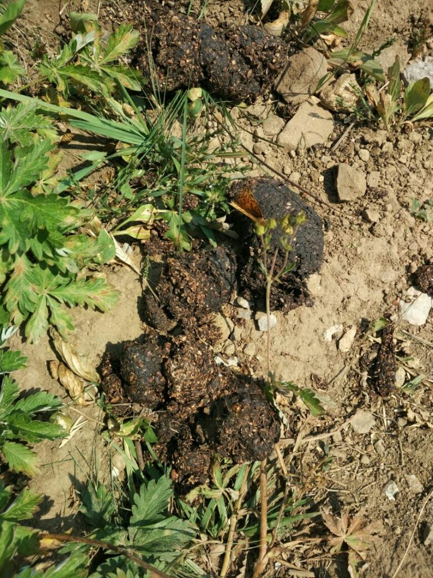 Fast eine Stunde lang unterhalten wir uns mit diesen beiden tollen Menschen. Eigentlich wäre das unsere Pausen-Zeit gewesen, aber wir haben nichts gegessen und getrunken, weil wir kein Wasser dabei hatten. Nun haben wir Hunger und Durst, halten eine Viertelstunde später beim nächsten Bach an und machen schon wieder Pause. Das kann ja heute nicht viel werden mit Weiterkommen. Komischer Tag. Irgendwie kommen wir heute nicht so richtig in die Gänge. Etwa 100 Meter vor mir knackt es ganz gewaltig zwischen den Bäumen, Äste wackeln. Ein großes Tier haut eilig ab, aber ich kann es nicht genau erkennen. Nur ein kurzes Stück weiter liegt ein dicker Haufen Bären-Kacke auf dem Weg, wieder eindeutig von einem Grizzly. Eine Forststraße kreuzt unseren Trail. Ein überdimensionierter Pfeil aus Ästen liegt auf dem Boden und zeigt nach rechts. Was soll das denn bedeuten ? Eigentlich machen nur Thru-Hiker solche Zeichen als Hilfestellung, und die wissen, was sie tun. Mal wieder Rätsel-Raten ….. Vielleicht hat sich die Wegführung des CDT geändert, oder der Weg über die Straße ist kürzer und schneller. Nach Befragung von GPS und Papierkarte entscheiden wir uns trotzdem für geradeaus – und kommen richtig an. 🙂