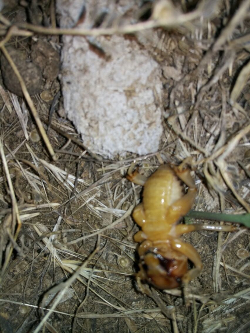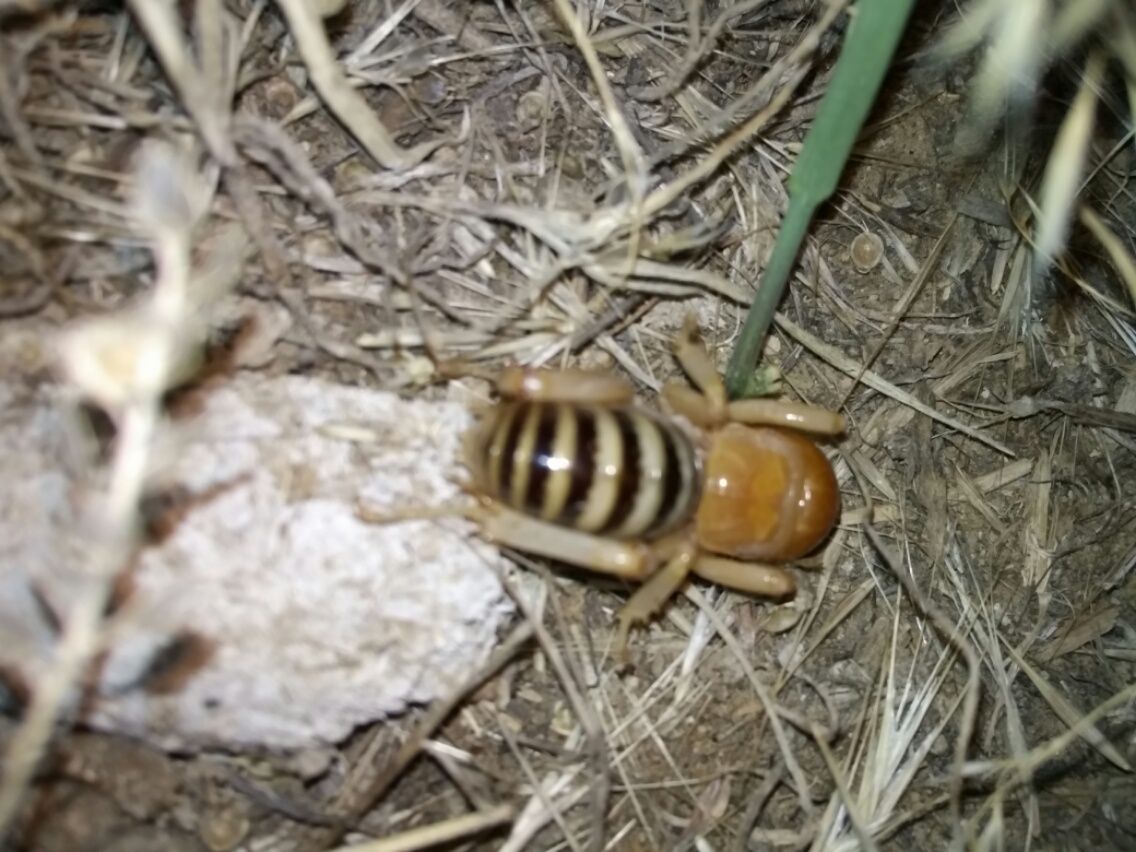 Von der Quelle aus entdecken wir vereinzelte Pferde, die in einiger Entfernung grasen. Das müssen die berühmten Mustangs sein. 🙂 Mustangs heißen die wild lebenden Pferde Nordamerikas. Es sind eigentlich keine Wildpferde, sondern die Nachkommen verschiedener europäischer Hauspferde-Rassen. Für die Zucht nicht so geeignete Tiere wurden früher einfach von den Farmern in die Freiheit entlassen. Dort haben sie sich mit den echten Wildpferden gepaart und dadurch den Gen-Pool mehr und mehr verändert. Ich mache mich auf die Pirsch und versuche, langsam näher heranzukommen. Aber meine Vorsicht ist unbegründet, die Tiere sind überhaupt nicht scheu. Inzwischen kann man zwei verschiedene Herden ausmachen, eine Gruppe von 8 erwachsenen Pferden und eine 5-er Gruppe auf der anderen Seite. Die größere Herde kommt auf uns zu, das Ziel ist die Wasserstelle. Sie gehen gemeinschaftlich an den Teich und trinken. Danach legen sie sich nacheinander zum Abkühlen ins Wasser, schütteln sich, um sich gleich darauf im Wüstensand zu wälzen. Ein faszinierendes Schauspiel ! Was haben wir für ein Glück, dass wir gleich an unser ersten Nachmittag im Great Basin die wilden Pferde zu sehen bekommen ! Und dann noch so nahe und ganz unbekümmert in Aktion. Wir können es kaum fassen. Klarer Fall von “ zur richtigen Zeit am richtigen Ort „. 🙂 Lange bleiben wir stehen und beobachten das Treiben. Die Tiere sehen bis auf etliche Narben im Fell gesund aus, die Körper schlank und voller Spannkraft. Zum Schluss kommen sie tatsächlich auf uns zu und stellen sich vor uns in einer Reihe auf. Man könnte sie beinahe anfassen. Dann traben sie geschlossen davon. Wahrscheinlich wären wir sonst noch länger geblieben. Wir sind ganz benommen von diesem tollen und unerwarteten Erlebnis. 🙂 Nachdem wir ein Stückchen weiter gelaufen sind und einen Hügel umrundet haben, sehen wir “ unsere Herde “ der 8 zutraulichen Wildpferde wieder. Außerdem können wir eine weitere Herde am Hang beobachten, diesmal offensichtlich nur Mütter mit Kindern und Schwangere. Diese kleine Gruppe besteht aus 5 Stuten und 3 Fohlen, die dicht beieinander stehen. Wir gehen nicht ganz so nahe heran, weil wir nicht stören wollen. Ein paar Fotos, dann lassen wir sie in Ruhe und marschieren weiter. Nicht lange danach entdecken wir schon wieder braune und schwarze Punkte in der Ferne, genau in unserer Richtung. Nein, diesmal sind es keine Pferde. Beim Näherkommen erkennen wir, das es sich um Kühe handelt. Wir laufen mitten durch eine Kuh-Herde von mindestens 30 Tieren. Links und rechts von uns stehen sie und glotzen uns an, bevor sie wie auf Kommando umdrehen und flüchten. Dumm wie Brot. 😉 Zwischendurch sehen wir immer mal wieder Antilopen an den Hängen. Unser Weg wäre ziemlich eintönig, wenn wir nicht die Tiere hätten. 😉 Beim Abendessen entdecken wir noch ein besonders merkwürdiges Ding vor uns im Gras liegen. Es sieht ein bisschen aus wie eine Biene mit schwarz-gelben Streifen am Hinterteil, dazu ein dicker runder Kopf und schwarze Augen. Die Konsistenz ist glibberig, zwei Kugeln aus gallertartiger Masse. Ein weiches Etwas, wie gerade geschlüpft, etwa 3 Zentimeter groß, dazu 6 angewinkelte Beine. So weit könnte man denken, es sei die Larve einer Riesen-Heuschrecke. Wir sind natürlich neugierig und drehen das kleine Ding vorsichtig um. Da staunen wir noch mehr, denn auf der Unterseite sieht man so etwas wie einen Schnabel. Wie passt das denn alles zusammen ? Keine Ahnung, was für ein Lebewesen wir da gefunden haben. Dieses Ding erinnert uns doch sehr an ein Alien. 😉