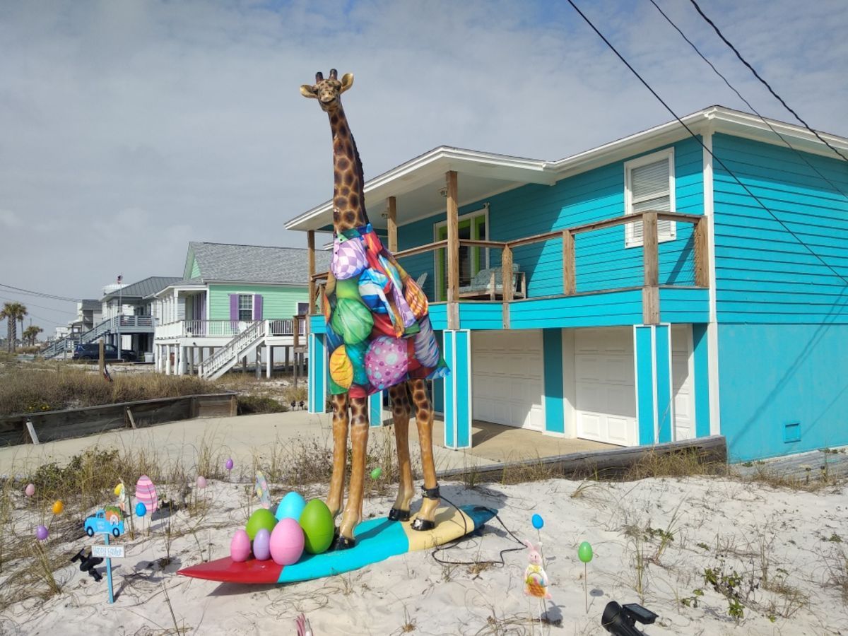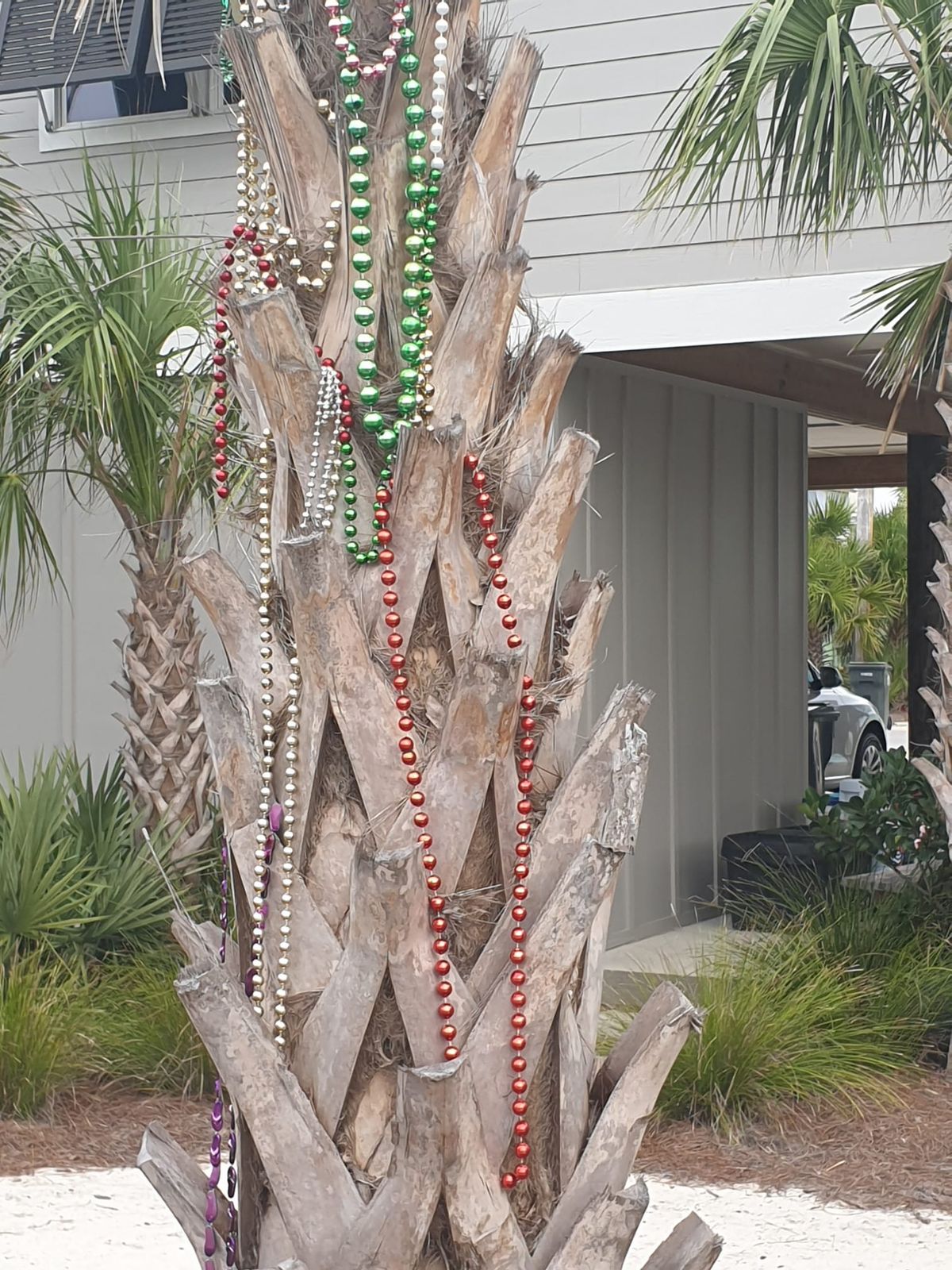 Einige Anwohner führen ihre Hunde aus, mehrere Jogger und Radfahrer sind unterwegs. Alle Menschen sind freundlich und grüßen, obwohl wir nicht mehr besonders adrett aussehen. Manche fragen, wie weit wir gelaufen sind, andere gratulieren uns, weil wir fast am Ziel sind. Die kennen anscheinend den Florida-Trail. Nett. 🙂 In Pensacola Beach kehren wir zum Frühstück im Subway ein. Viertel vor acht, schon zehn Kilometer geschafft. Läuft gut. 🙂 Jetzt wissen wir auch, woher „Siesta“ ihre vielen glitzernden Perlenketten hatte. Anscheinend schmücken die Bewohner dieser exklusiven Ferien-Siedlung ihre Palmen damit.