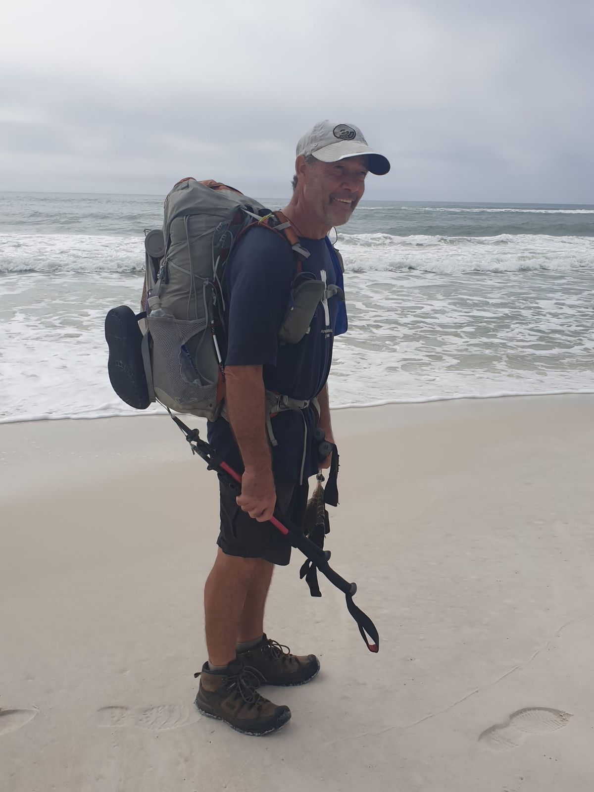 Wirklich beeindruckend, dieser Spaziergang. Immer wieder stellen wir fest, wie toll die Stimmung beim Wandern ganz früh am Morgen ist. Kurz darauf erste Pause am Strand. Wir wollten es nicht glauben, haben die Begeisterung für übertrieben gehalten. Aber der ist wirklich so schön, wie uns gesagt wurde. Weißer Sandstrand, das kennen wir von zu Hause, aber dieser Sand ist unheimlich fein. Weiß und weich wie Samt. Dazu lockt das Meer mit einer tollen Brandung. Zu dieser frühen Stunde sind kaum Menschen am Strand. 🙂 Schuhe und Strümpfe aus, wir tauchen ein in den Golf von Mexiko. Laufen eine ganze Weile barfuß und genießen das Meer. Es tut so gut, die geschundenen Füße und die Waden im kalten Wasser zu baden.