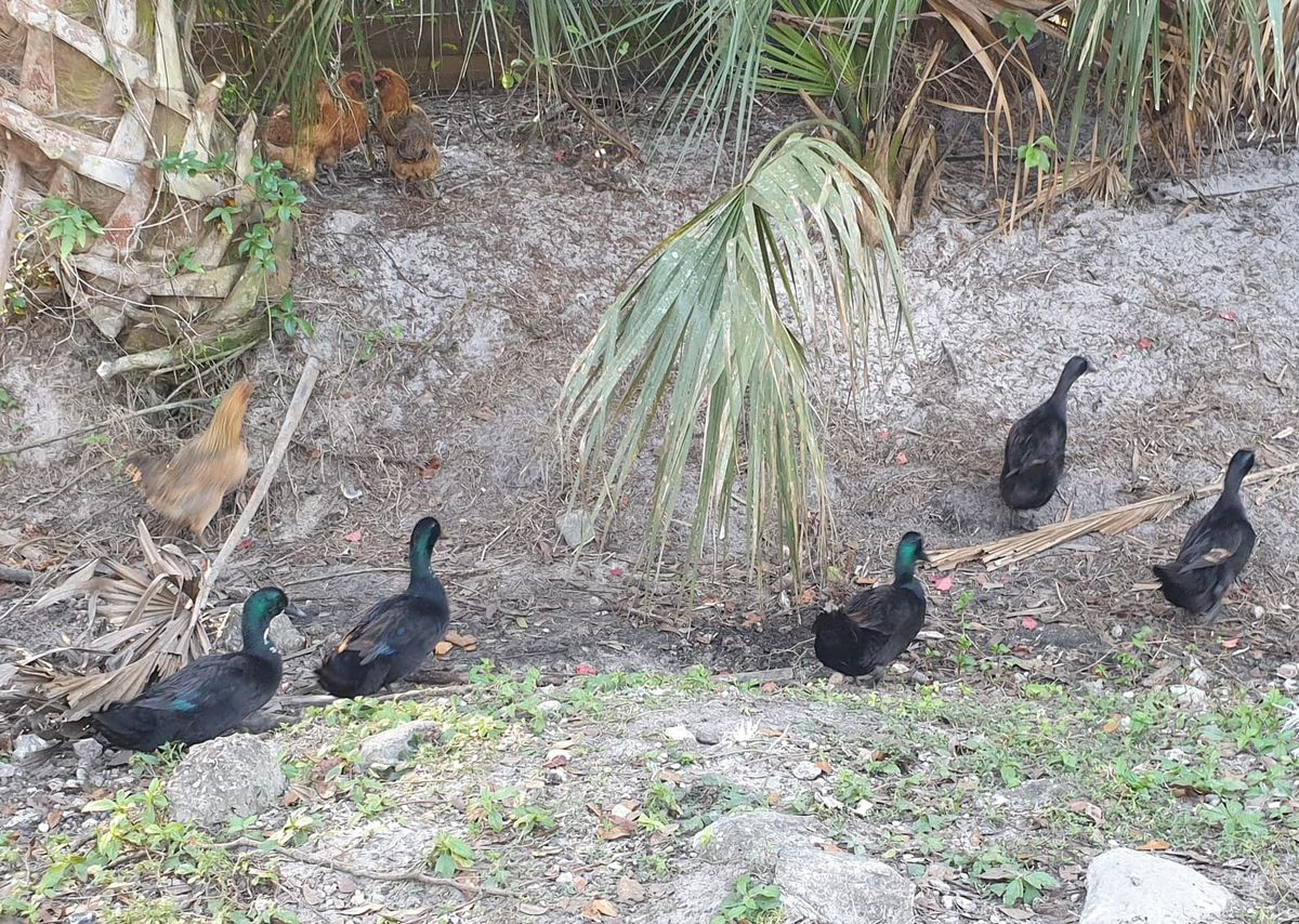 Immer wieder gibt es sumpfige Passagen. Manchmal kann man den Matsch umgehen, ein anderes Mal sind die Pfützen knöcheltief. Egal, die Schuhe und Strümpfe sind sowieso nass. Keine Straße ist mehr zu hören, keine Menschen zu sehen. Sehr schön, so gefällt uns das schon besser. Wir haben etwa zwei Drittel dieses Gebietes durchwandert, als wir die ersten Schüsse hören. Es ist Jagd-Saison. Immer öfter fallen die Schüsse, und es hört sich schon ziemlich nahe an. Wir beschließen, dass wir aus Sicherheitsgründen bei der nächsten Möglichkeit den Trail verlassen und auf eine Straße ausweichen, wenn die Knallerei nicht aufhört. Kurz darauf kreuzt eine Fahrspur unseren Weg, der Trail führt geradeaus auf der anderen Seite zurück in den Wald. Wir lesen auf einem Schild „Safety Zone“. Das bedeutet, dass in dem vor uns liegenden Gebiet nicht gejagd und geschossen werden darf. Sehr beruhigend, hoffentlich halten die Jäger sich daran. Ein Kilometer abseits des Trails liegt Christmas. Ein Weiler mit etwa 1000 Einwohnern, die überwiegend in Mobil-Heimen wohnen. Schwarze Enten watscheln über die Straße, diese Art ist im östlichen Nordamerika heimisch. Komische Menschen, düstere Stimmung, viel zu viele Verbotsschilder, hohe Zäune mit extra Stacheldraht, Video-Überwachung und böse Hunde. Große Plakate mit Slogans, die so gar nicht zu unserer Gesinnung passen. Christmas ist kein angenehmer Ort, wir laufen schnell durch. Ziel ist ein Lebensmittel-Laden, wo wir Cheeseburger und Pizza essen sowie einen kleinen Einkauf für die nächsten zwei Tage machen. Wenigstens dort sind die Leute nett. Wir dürfen unsere Power-Bank an der Steckdose laden und bekommen Wasser zum Mitnehmen in unsere Flaschen gefüllt. Um 19.00 Uhr stehen wir vor einem Tor mit einer geschlossenen Schranke für Autos, Fußgänger können an einer Seite durch. Die nächsten 8 Kilometer liegt Seminole-Gebiet vor uns. Auch dafür braucht man eigentlich ein spezielles Permit, aber aus Gesprächen mit den anderen Wanderern wissen wir, dass die Florida-Trail-Hiker nicht alle paar Meilen um eine neue Erlaubnis ersuchen. Wir gehen einfach rein und sind froh, diesem Dorf mit seinen negativen Schwingungen den Rücken zu kehren. Im Eifer des Gefechts verlaufen wir uns noch im Dunkeln. Falscher Abzweiger, wir kommen an einen See, der da nicht hingehört. Umkehren und ein kleines Stück zurück. Mit Hilfe unserer Stirnlampen finden wir den Trail und bauen unser Zelt an der Fish Hawk Campsite auf. Sehr feuchter Untergrund, aber das Zelt ist sowieso noch nass.