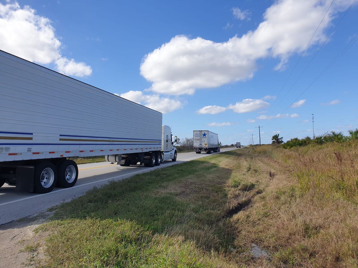 Links steht ein kaputter Wagen auf dem Grünstreifen. Die Vorderfront ist dermaßen demoliert, dass man das Innenleben des Motorraums sehen kann. Da muss es ordentlich gescheppert haben. Ungefähr 100 Meter weiter liegt ein Reh am Straßenrand, welches wohl gerade erst sein Leben ausgehaucht hat. Keine äußeren Verletzungen, das Tier liegt scheinbar unversehrt da. Reh tot, Auto kaputt, die Kollision ist für beide Seiten schlecht ausgegangen. 🙁 Entlang dieser endlosen Straße gibt es ausschließlich Farmland. Da ist eine Ranch, zu der ausgedehnte Weiden gehören, auf denen Rinder grasen. Dann eine riesige Farm, die Zitrusfrüchte produziert. Orangen- und Zitronenbäume stehen in gerader Linie, ellenlange Reihen und mehrere Kilometer weit. Ein Wagen mit Anhänger hält an, darin sitzt ein Farm-Arbeiter. Er fragt, ob wir den Florida-Trail laufen, ob wir mitfahren möchten und ob wir Wasser brauchen. Dann schenkt er uns drei Blut-Orangen von seiner Ladefläche und dazu zwei eingeschweißte Riegel „Beef Jerky“ Das ist getrocknetes Fleisch vom Bison, teures Zeug, sehr beliebt bei Hikern wegen des hohen Protein-Gehalts. Tolle Sache ! 🙂 Eine Brücke führt über einen schmuddeligen Fluss. Der ist voll mit Wasserpest und Müll, dazwischen guckt der Kopf eines Alligators heraus. Gut, dass wir dieses Wasser nicht nehmen müssen. Es gibt auf der ganzen langen Strecke zwei Wasser-Depots, das wissen wir aus unserer App auf dem Handy. Freunde des Trails oder ehemalige Wanderer stellen ein paar Kanister Wasser an versteckter Stelle hin, damit man auf diesen 50 Kilometern nicht mehr schleppen muss als nötig.