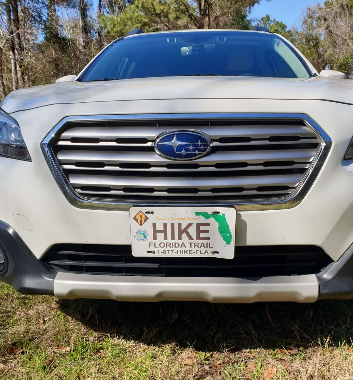 In der Nacht hat es erneut gefroren. Sternenklarer Himmel und beißend kalt. Wir verkriechen uns mit Daunenjacke tief in den Schlafsack. Morgens früh ist unser Zelt nass, die Schlafsäcke sind feucht. Blöd, auf so einer nackten Stelle ohne den Schutz von Bäumen zu stehen. Der Weg bleibt so, einen besseren Zeltplatz hätte es über viele Kilometer nicht gegeben. Wir folgen weiter dem Palatka-Lake Butler-Trail, immer geradeaus über die steinige Wegspur. Langweilig. Ein Reh, ein paar Vögel und Eichhörnchen, mehr Tiere gibt es nicht zu sehen. Rodung, der dichte Verkehr und die Jäger tragen sicher dazu bei. Wahrscheinlich gibt es bessere Plätze für das Wild. Kurz vor unserer ersten Pause finden wir ein Wasser-Depot. 🙂 Das kommt uns wie gerufen, nachdem wir gestern mit brackigem Sumpfwasser gekocht und heute früh nur einen Kaffee getrunken haben. Trail Magic von Janie, die ihre Telefonnummer auf den Kanistern notiert hat. Thomas bedankt sich per SMS und schreibt ihr eine Nachricht, dass nur noch ein halbvoller Kanister übrig ist. Wir setzen uns zur Pause an die Straße, eine Viertelstunde später fährt Janie vor, um neues Wasser zu bringen. Sie arbeitet seit 20 Jahren als Freiwillige für die Florida Trail Association. Tolle Frau ! 🙂 Sie kommt aus Lake Butler und würde uns im Auto mitnehmen, aber wir möchten auch die nächsten 10 Kilometer entlang der Straße laufen. Florida-Trail komplett, ohne ein Stück auszulassen.