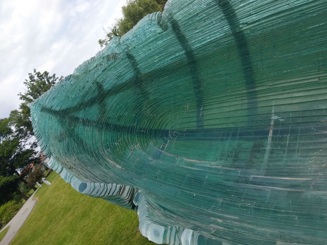 Unser Weg führt durch den Skulpturenpark „Gläserne Gärten von Frauenau“. Die Himmelsschale sowie die Glas-Arche von Ronald Fischer, einem lokalen Künstler aus Zwiesel, sind besonders beeindruckend. Die niederländische Künstlerin Jeanne Melief zeigt, was man aus Totholz alles machen kann. Eine abgestorbene Eiche am Museumsteich wird mit unzähligen Buntglassteinchen, leuchtenden Farben, Blattgold und Silberfolie zum Hingucker.