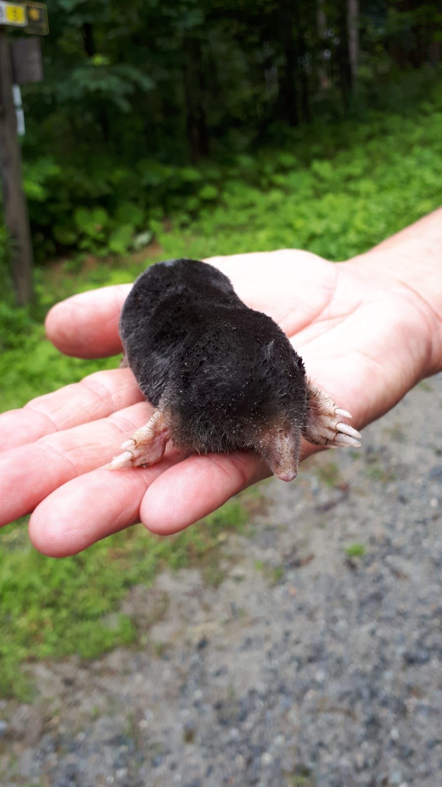 Wieder eine kalte Nacht mit heftigem Regen, der Blick aus dem Zelt morgens zeigt dicke Nebelsuppe. Es geht weiter bergauf, nur 2 Kilometer voraus liegt der 1167 Meter hohe Berg Haidel. Wir klettern auf den 35 Meter hohen Aussichtsturm und bewundern diese tolle Konstruktion. Oben ist man auf dem höchsten Punkt weit und breit, die dunkelgrünen Wälder liegen unter uns. Der Rundumblick zeigt Berge zu allen Seiten, bei klarem Wetter könnte man bis zu den Alpen blicken. Leider keine Weitsicht für uns, denn es ist immer noch grau und neblig.Der Tag bringt nicht viel Besonderes. Ein niedlicher Maulwurf liegt tot auf dem Weg. Schade – so ein hübsches Tier und überhaupt keine äußeren Verletzungen. Wir rätseln darüber, was dem wohl passiert ist. Ein ständiger Nieselregen begleitet uns, die Kälte kriecht langsam in alle Knochen. Zur Mittagszeit finden wir einen Unterstand für Jäger, der uns zur Pause einlädt. Winzig klein, aber mit einer Bank, auf der wir gerade nebeneinander sitzen können. So können wir wenigstens im Trockenen essen. Nach einer Stunde sind wir satt, aber durchgefroren. Es wird Zeit, dass wir weiterlaufen, und zwar schnell. Die Landschaft ist ohne jeden Reiz, bestenfalls langweilig, eigentlich sogar ziemlich hässlich. Etwa 10 Kilometer laufen wir auf einer Forststraße durch ein trostloses Gebiet mit wenig Baumbestand, dafür aber umso mehr Fahrspuren. Der Regen hat ganze Arbeit geleistet, zu beiden Seiten der Straße fließt uns schmutziges Wasser entgegen. Ungefähr eine halbe Stunde lang folgen wir einem schmalen Pfad entlang des Osterbachkanals. Dicht an dicht stehen Sträucher mit roten Johannisbeeren. Endlich mal ein schönes Stück, leider viel zu kurz – dann wieder Straße. Nicht so toll heute, darüber sind wir uns einig. Um 16.00 Uhr stehen wir am Abzweiger zum Gipfel des Dreisessel. Nur noch 5 Kilometer, aber bei dem schlechten Wetter macht es überhaupt keinen Sinn, noch weiter in die Höhe aufzusteigen. Ein kleiner Umweg bringt uns nach Haidmühle, wo wir ein paar Stunden das schlechte Wetter verbummeln möchten. Der einzige Laden hat geschlossen, zwei Cafés, mehrere Gasthäuser …. alles zu. Was tun ? Es sind nur 2 Kilometer bis zur tschechischen Grenze. Vielleicht haben wir da mehr Glück und können irgendwo einkehren. Keine 5 Minuten dauert es, dann haben wir unsere Entscheidung getroffen. Wir werden vom Original-Goldsteig abweichen und den Weg zum Dreisessel-Berg durch Tschechien wandern. In Nové Údoli ( Neuthal ) gibt es keine Wohnhäuser, aber tatsächlich eine geöffnete Gaststätte. Zünftiges Essen, günstige Preise, zwei Stunden Trocknen und Aufwärmen. Nach dieser Pause schlagen wir einen rot-weiß-markierten Wanderweg ein, der ebenfalls zum Dreisessel führt, nur 8 Kilometer bis auf den Gipfel. Zu beiden Seiten der Straße wachsen Blaubeeren, die sind reif, aber erstaunlich sauer. Eine knappe Stunde vom Gasthof entfernt stellen wir unser Zelt im nassen Moos auf. Um 20.00 Uhr liegen wir schon wieder im Schlafsack. Schietwetter, seitdem wir von Marburg wieder zurück auf dem Goldsteig sind. In den letzten 4 Tagen haben wir gerade einmal 5 Minuten die Sonne gesehen.