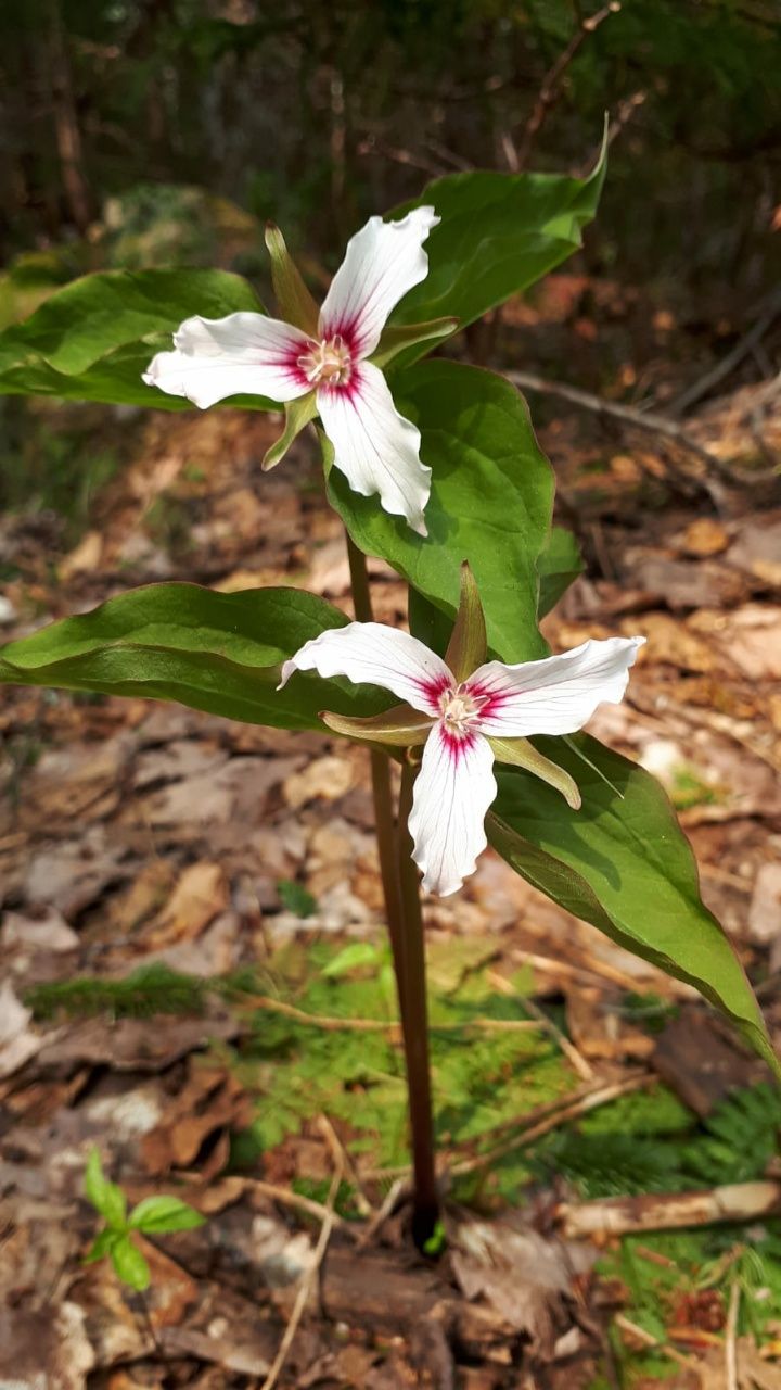 Der Wald präsentiert sich noch ziemlich nackt. Die Vegetation ist hier oben Mitte Mai etwa soweit wie beim Start meines Solo-Hikes Mitte März 2014 im Süden der USA. Kahle Bäume, kaum grün, einige kleine Knospen sind an den Sträuchern zu sehen. Auf dem Weg liegt eine dicke Schicht herbstlich gefärbter Blätter, platt gepresst und gut konserviert. Hier ist der Schnee noch nicht allzu lange weg. Dafür wagen sich bereits vereinzelt Frühjahrsblumen durch das Unterholz. Ladyslipper blühen in dunkel-lila oder weiß, dazwischen stehen hellgrüne Pflänzchen mit gelben Blüten wie kleine Osterglocken.