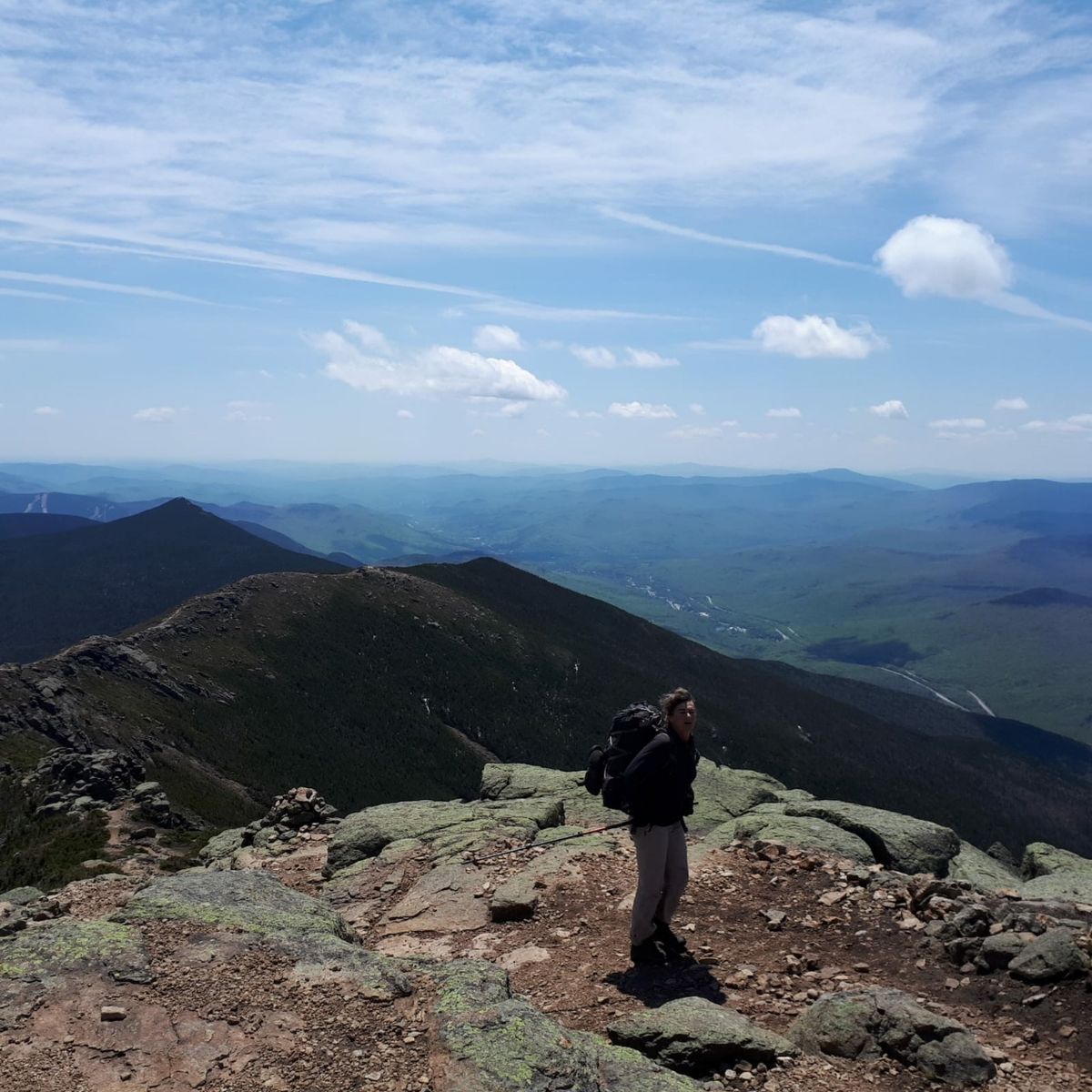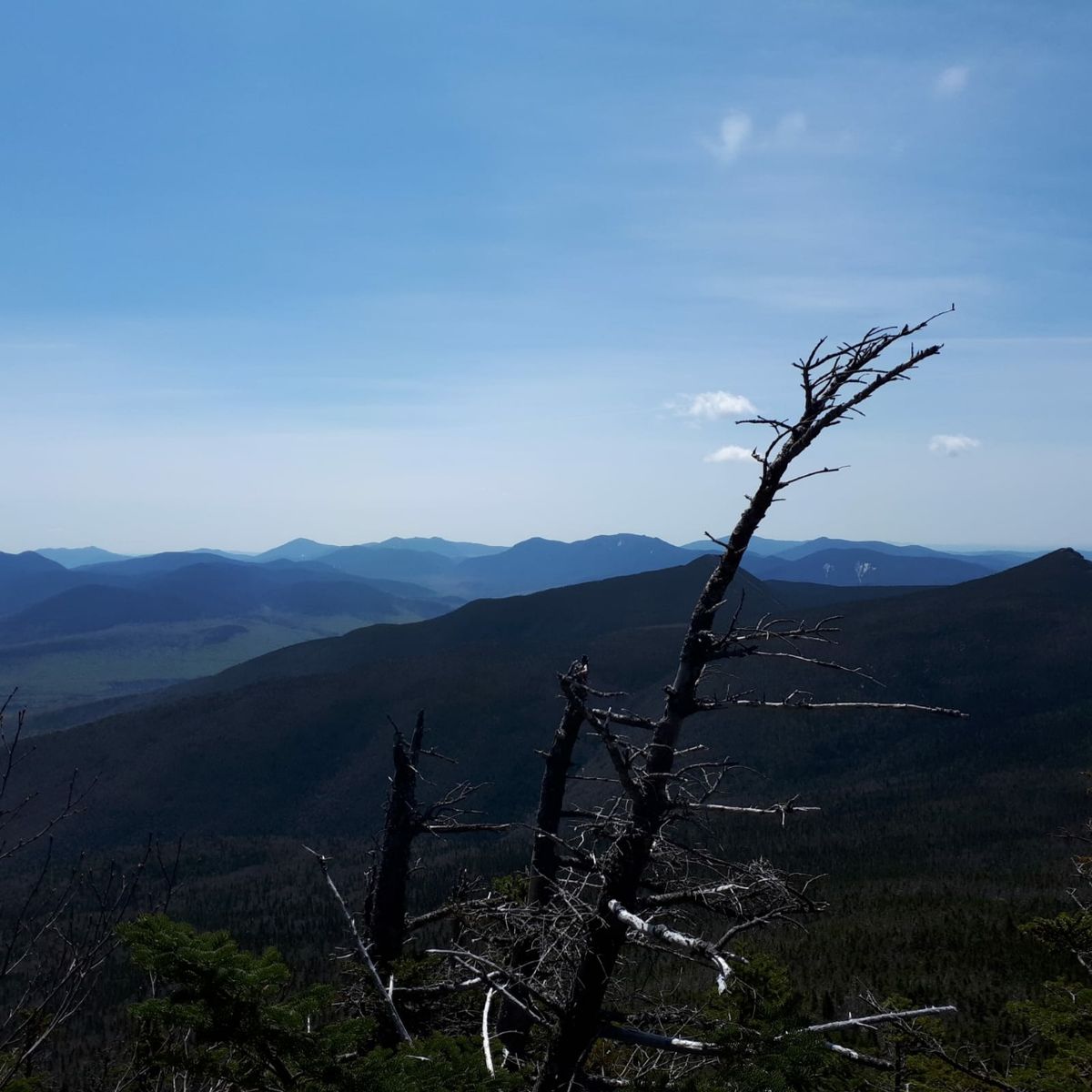 Wir können ganz deutliche Bärenspuren erkennen. Gleich dahinter liegt der Mount Lafayette, das sind weitere 250 Höhenmeter bergauf. Beide Gipfel sind mehr als 5.000 Fuß hoch und liegen oberhalb der Baumgrenze. Nackte Felsen, keine Pflanzen. Über uns gleitet wieder der Segelflieger und betrachtet die Presidential Range aus der Luft. Wir erhaschen einen ersten Blick auf Mount Washington, der in den nächsten Tagen bezwungen werden will. Der höchste Berg im Nord-Osten der USA hat noch viel Schnee zu bieten. Nachmittags verläuft der Trail stetig nach unten ins Tal, wo wir wieder das Vergnügen mit Schneematsch und Sumpf haben. Thomas hört das Schnauben und Knacken eines Elches im Unterholz. Ein weiteres Mal schrauben wir uns hoch hinauf bis auf den Mount Garfield – so langsam reicht es. Die Beine sind müde.
