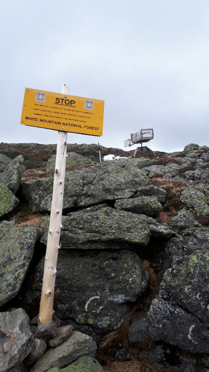 Nur 3 Kilometer unter dem Gipfel befindet sich die „Lakes of the Clouds Hut“. Hier kehren wir kurz ein für die Frühstückspause. Es gibt heißes Wasser, frisch gebackenes Brot, Kaffee haben wir selber. In dieser Hütte ist schon richtig was los. Viele Tages-Wanderer sind heute unterwegs, weil man auch mit dem Auto oder Bahn bis auf den Gipfel fahren kann. Die Lakes of the Cloud macht ihrem Namen alle Ehre – oberhalb dieser Hütte liegen zu beiden Seiten des Trails zwei Gletscher-Seen. Ein großes gelbes Schild warnt vor dem kommenden letzten Anstieg. Dort steht, dass man den Weg nur bei guten Bedingungen gehen soll und bei eventueller Wetter-Verschlechterung sofort umdrehen muss.