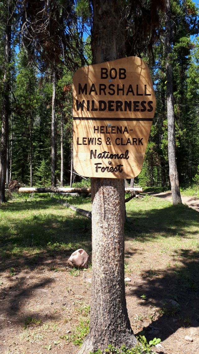 Vom Benchmark-Trailhead aus laufen wir über eine Holzbrücke und stehen schon bald vor einem Schild „Bob Marshall Wilderness“. Ja, genau dort möchten wir hin, wir haben die Berge schon seit Tagen vor uns liegen. An einem Baum hängt gut sichtbar ein großes CDT-Zeichen, ein breiter Pfad führt nach links. Keine Zweifel, keine Kontrolle. Wir marschieren ziemlich flott, weil wir gerne trotz spätem Start ein paar Meilen vorlegen möchten. Uns geht es richtig gut, wir sind gerne zurück im Wald. Nach 1,5 Stunden kommt uns die Sache jedoch komisch vor. Die Hügel wollen gar nicht näher kommen, der Fluss bleibt immer links von uns. Wir schauen auf’s Handy und können es nicht fassen. Tatsächlich sind wir falsch herum auf den CDT eingebogen. Sind ganze 6 Kilometer in die verkehrte Richtung gerannt, nun müssen wir alles wieder zurück. Insgesamt 12 Kilometer umsonst. Das tut weh ! Ärgerlich ! Thomas sagt dazu : „Ist doch nicht schlimm.“ Nun sind wir gar nicht mehr so gut gelaunt. 🙁 Jeder grummelt so vor sich hin, wir laufen etwas weiter auseinander als gewöhnlich. Nach einer Stunde ist die Wut verraucht, wir vertragen uns wieder. Recht hat er, eigentlich ist es auch egal. Sobald wir in Waterton ankommen, ist dieser Trail unwiderruflich zu Ende. Auch unser Nomadenleben, die Freiheit in der Natur, ist vorbei, sobald wir im Flieger nach Deutschland sitzen. Also ist es gar nicht wichtig, ob wir einen halben Tag früher oder später die kanadische Grenze erreichen. Also Schwamm drüber – alles gut.