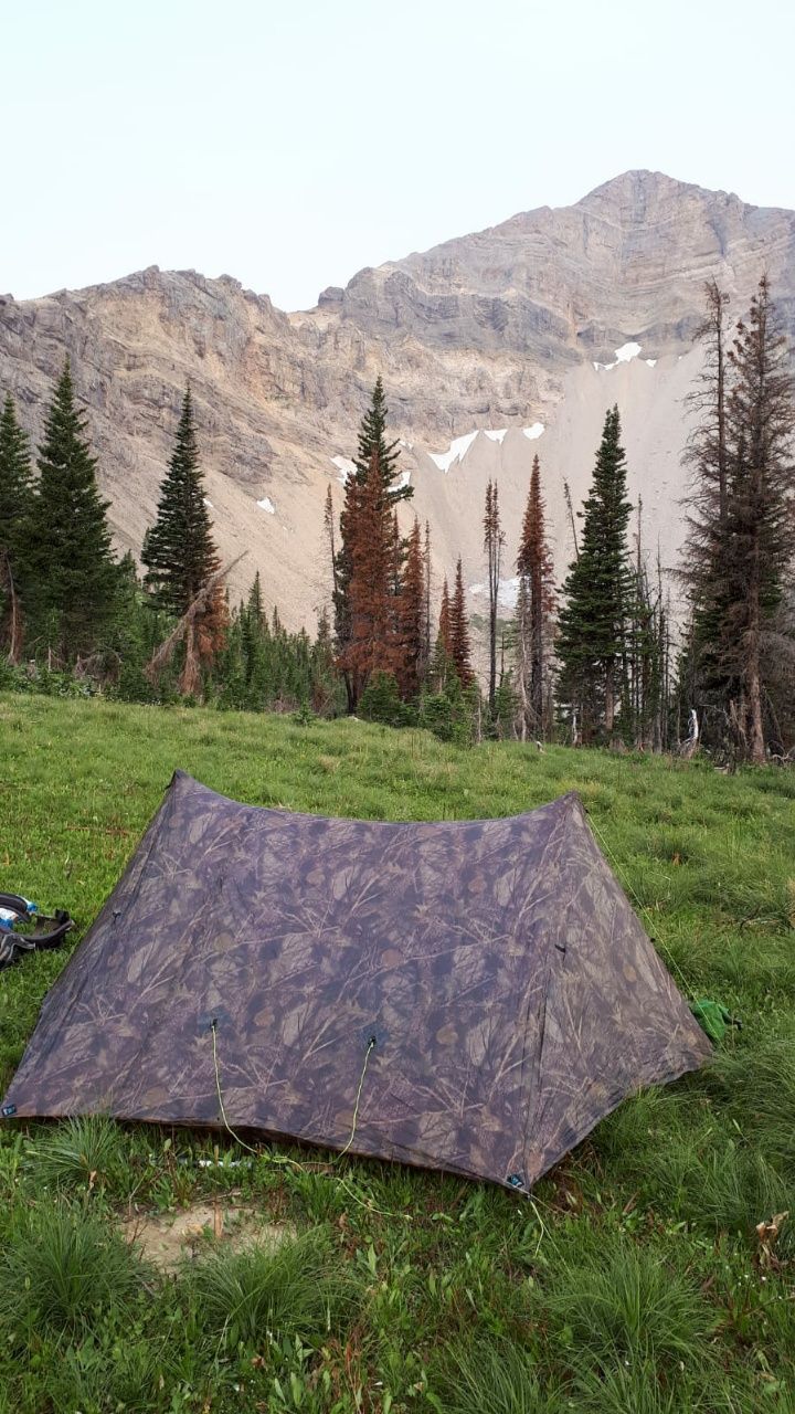 Eigentlich möchten wir unser Lager am Dean Lake aufbauen. Schöner See, aber leider kein schöner Platz für uns. Die beste Stelle ist bereits mit zwei Zelten besetzt, eine Böschung säumt das Ufer, der Grund ist rundum steinig. Also noch immer kein Feierabend, obwohl wir eigentlich genug haben. Dafür finden wir bald eine grüne Ebene mit gesunden Bäumen. Die Felswand zu unserer Linken sieht gewaltig aus, ein bisschen wie das Gegenstück zur Chinese Wall. Das alpine Gelände in der Bob Marshall Wilderness gefällt uns ausgesprochen gut. Fantastische Landschaft und ringsum hohe Berge, die plötzlich wieder klingende Namen haben. Wir zelten am Fuße des Pentagon Mountain, ein mehr als 2700 Meter hoher imposanter Berg. An seiner Ostflanke liegen noch Schneereste. Während unserer Abend-Mahlzeit bekommen wir Gesellschaft von einem Kolibri. Er möchte anscheinend ins Zelt fliegen, schwirrt dann eine ganze Weile um uns herum und setzt sich schließlich auf einen kleinen Tannenbaum in der Nähe. Trotz kaputter Schuhe und mit viel Anstrengung haben wir 30 Kilometer geschafft.