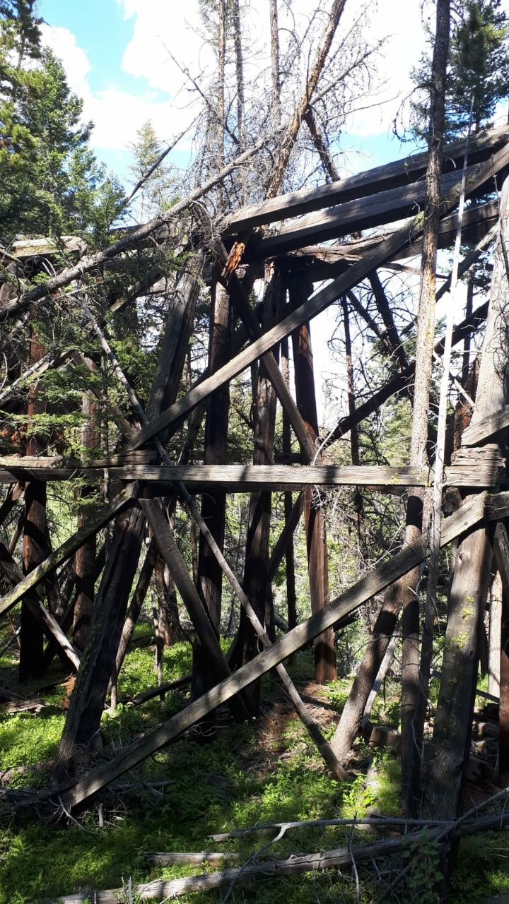 Ein idyllisches Tal mit jungen Birken tut sich auf. Dazwischen schlängelt sich der Fluss in weißem Kiesbett. Der CDT ist sowas von schön und abwechslungsreich, dass er bei uns in der Hitliste aller Longtrails unbestritten die Nummer 1 ist. Am Nachmittag kommen wir in eine Gegend, wo es vor längerer Zeit furchtbar gebrannt haben muss. Eine riesige Fläche ist verkokelt, ein ziemlich trauriger Anblick. Alle Bäume sind hinüber und stehen oder liegen rußgeschwärzt ohne Äste in der Landschaft. Neue Bäumchen sind noch nicht nachgewachsen, nur Unkraut und Stachelgebüsch wuchern bereits wieder. Vielleicht war dieses auch eines der bösen Feuer voraus, als wir 2017 unseren CDT abgebrochen haben. Wir müssen unbedingt recherchieren bzw. die Einheimischen fragen. Mehrere Stunden wandern wir durch die toten Stämme. Leider nimmt uns diese abgebrannte Wüste auch jede Chance auf Schatten. Thomas flucht über die gnadenlose Sonne, der wir völlig schutzlos ausgeliefert sind. Da wünscht man sich doch fast schlechtes Wetter oder wenigstens ein klitzekleines Gewitter, das etwas Abkühlung bringt. Soll aber wohl heute nicht sein.