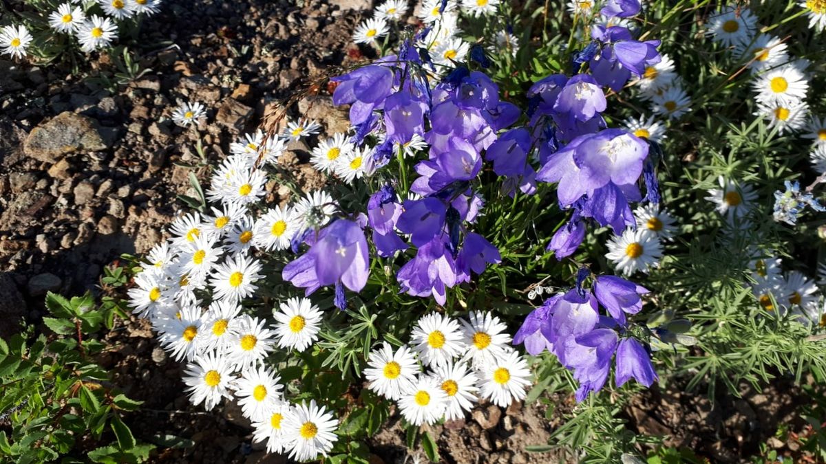 Es ist schon erstaunlich, wie weit sich bunte Sommerwiesen in dieser Höhe ausbreiten. Unzählige Blumen blühen in rot, blau, gelb, lila, orange und weiß. Das ist ein sehr hübscher Anblick, für meinen Heuschnupfen allerdings eher suboptimal.