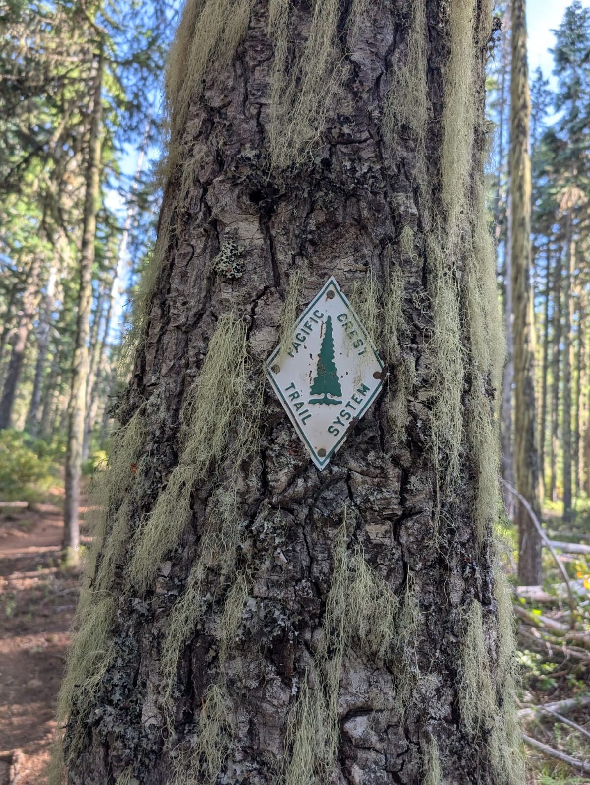 Um 11.00 Uhr haben wir den größten Anstieg des Tages bereits hinter uns. Sehr angenehm. Immer noch wandern wir durch die Warm Springs Indian Reservation. Es gibt ein paar Schilder an den Bäumen, eine gelbe Markierung, sonst keine weiteren Zeichen. Das Wasser an der Trooper Spring hat viele Insektenlarven an der Oberfläche. In der Tiefe ist es besser, wir machen zwei Flaschen zum Trinken voll. Bald dahinter passieren wir die 600-Meilen-Marke, 960 Kilometer geschafft.