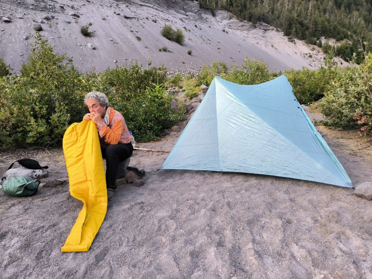 Während der Nacht hat es ein bisschen geregnet. Hört sich schön an, wenn die Tropfen auf’s Zeltdach platschen, während man warm und gemütlich im Schlafsack liegt. Morgens ist alles wieder trocken. Start schon um Viertel nach sieben. 1100 Höhenmeter Aufstieg liegen vor uns. Wir möchten abends vor Ladenschluss beim Olallie Resort ankommen. Bis dahin sind es 32 Kilometer. Das sollte zu schaffen sein, wenn das Gelände nicht zu schwierig wird.