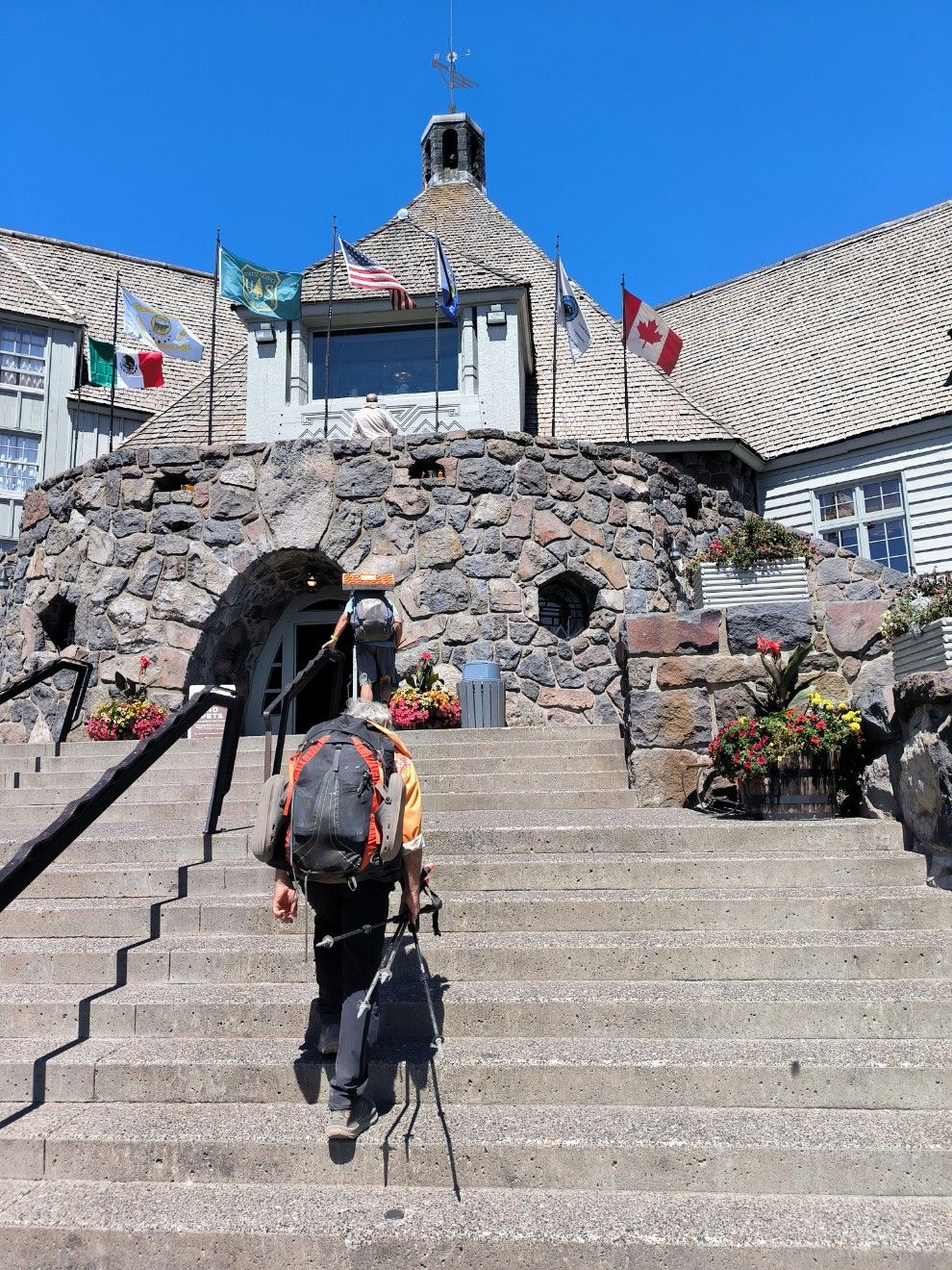 Besprechung beim Abendessen. Wir möchten zur Timberline Lodge. Am liebsten zum Frühstück, aber das werden wir kaum schaffen. Die Lodge liegt nämlich 1500 Meter höher als wir im Moment sind. Wie befürchtet geht es nach den Wasserfällen in einen satten Aufstieg. Ohne uns. Heute nicht mehr. Eine Stunde stapfen wir noch bergauf, so ist der aktuelle Plan. Den Rest lassen wir für morgen früh.