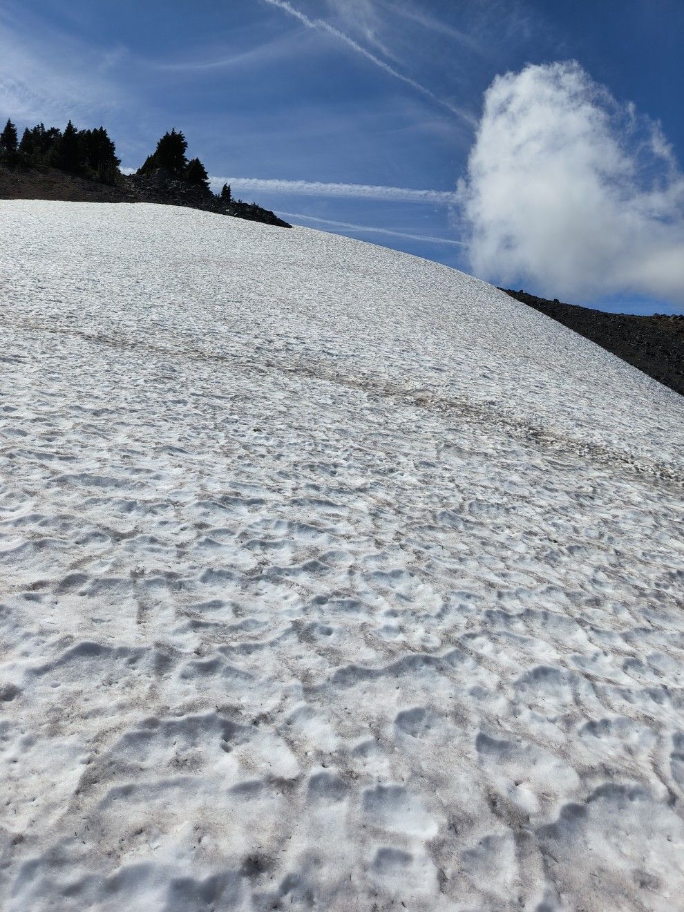 Eine weitere Fluss-Überquerung liegt vor uns. Das ist der ZigZag River, ebenfalls Gletscherwasser, aber am frühen Morgen ist es kein Problem. Auf halber Höhe stehen wir im dichten Nebel. Die Luft ist feucht und kühl, das wird Thomas gefallen. Kommen an mehreren Aussichtspunkten vorbei, aber wir sehen nur graue Nebelsuppe. Schade. Dafür kommen wir bei diesen Temperaturen sehr gut den Berg hoch. Zwei Stunden ziehen wir durch bis zum Frühstück. Auf 1700 Meter Höhe sind wir nun schon, dementsprechend kalt ist es. Ich friere während der Pause. Nur noch 10 Kilometer weiter, dafür brauchen wir allerdings knapp 3 Stunden. Immer mehr Menschen kommen uns entgegen, überwiegend Tageswanderer ohne Gepäck. Mount Hood liegt direkt vor unserer Nase. Aus der Nähe betrachtet wirkt er gar nicht so gigantisch, weil wir inzwischen so weit aufgestiegen sind.