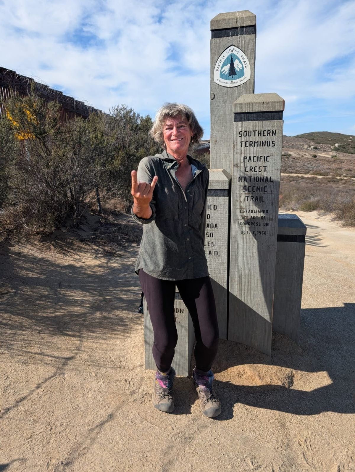 Am 12. November um 10.00 Uhr erreichen wir das Ziel der langen Wanderung und tragen unsere Namen in das Register ein. Dieses Monument ist das Gegenstück zum Monument an der kanadischen Grenze. Niemand da außer uns, also keine große Feier. Es ist nicht besonders emotional, weil wir ja gar nicht „richtig“ fertig sind, sondern die Lücke von knapp 700 Meilen erst im nächsten Jahr schließen werden. Viel beeindruckender ist für uns die Mauer zu Mexiko, ein gewaltiges Bauwerk. Und es kommt uns der Gedanke, dass wir lange nicht mehr so nahe beim Boot waren. Komisch, dass wir gerade hier und jetzt an die Walkabout denken.