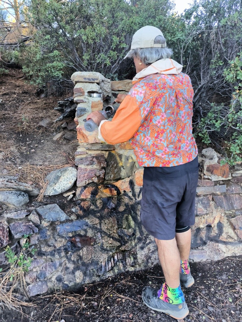 Wir überholen einen älteren Wanderer und kommen mit ihm ins Gespräch. Er ist 70 Jahre alt und bis jetzt drei Viertel des PCT gelaufen. Trail-Name „Mule“. Bereits nach wenigen Minuten wird er unangenehm politisch und lässt seinem Unmut freien Lauf. Normalerweise vermeiden wir dieses Reizthema, aber Mule muss seine Meinung anscheinend unbedingt loswerden. Da hängen wir jetzt mit drin. Unaufgefordert müssen wir uns solche Sachen anhören wie : „Don’t pay attention to the fat man on the balcony of the White House.“ Und das ist noch einer seiner harmlosen Sprüche.