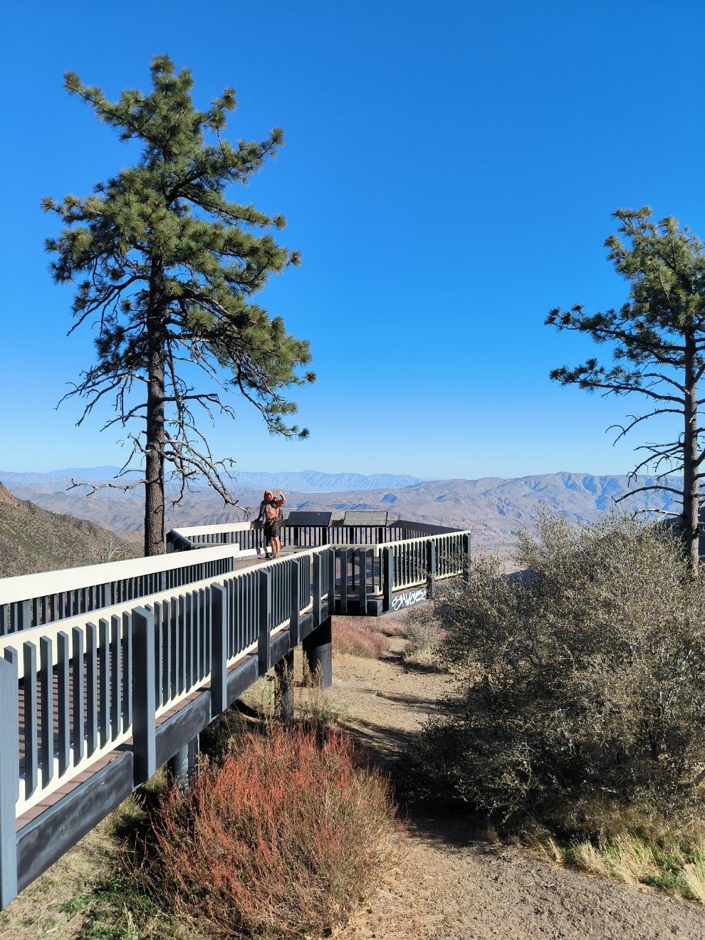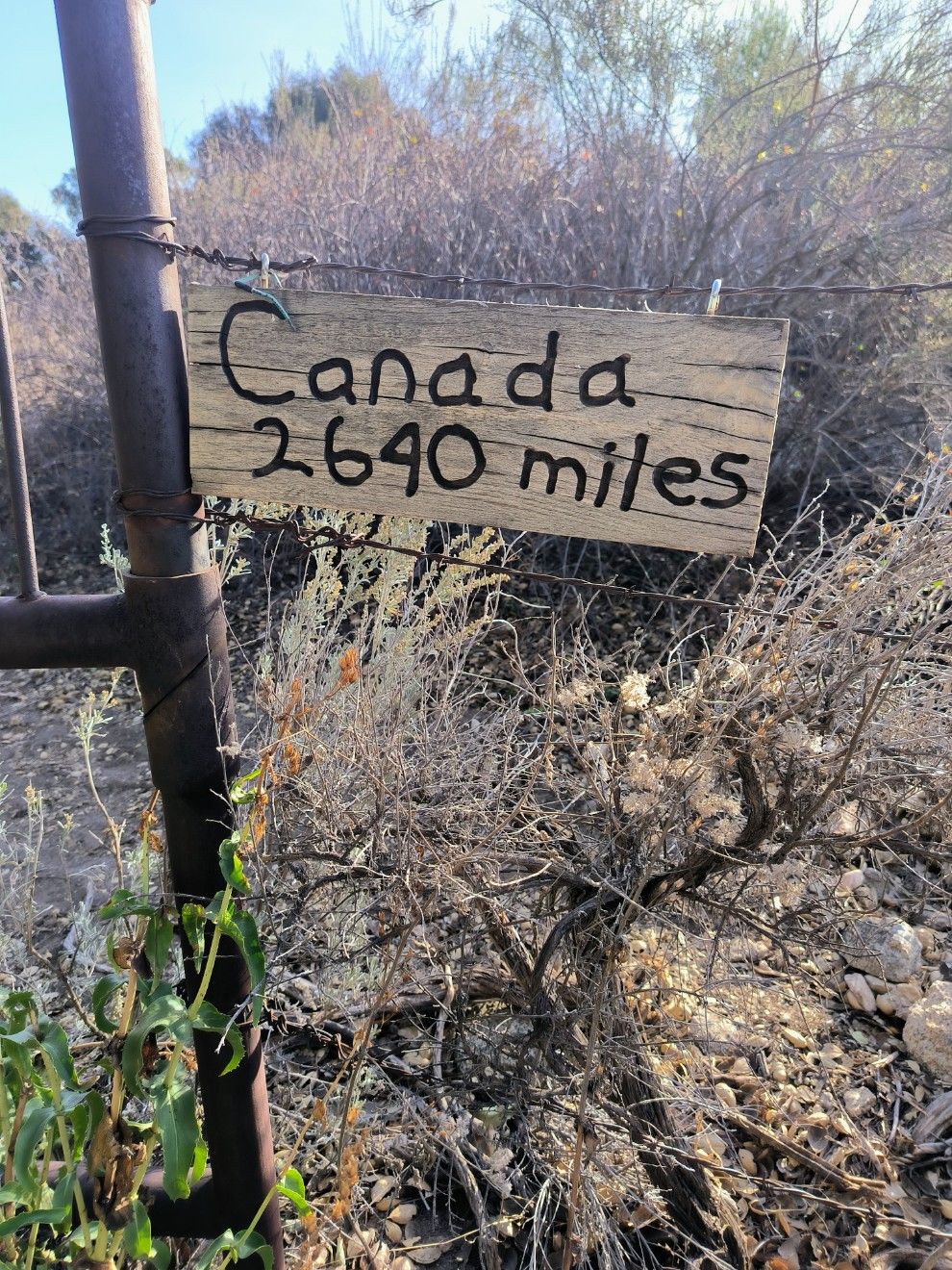 Die letzten Meter auf dem PCT ( in 2025 ) fallen nicht schwer. Wir sind froh, dass es zu Ende geht. Der Weg verläuft zum Teil direkt neben der Straße, geht aber weiterhin konsequent über jeden kleinen Hügel. Die Gegend wird endlich flacher, allerdings nicht schöner. Grau und staubig ist es zu dieser Jahreszeit. Etwas außerhalb des Ortes gibt es triste Wohnanlagen mit hohen Zäunen. Na klar, das Militär muss ja irgendwo wohnen. Campo liegt an der Grenze zwischen den Vereinigten Staaten und Mexiko.