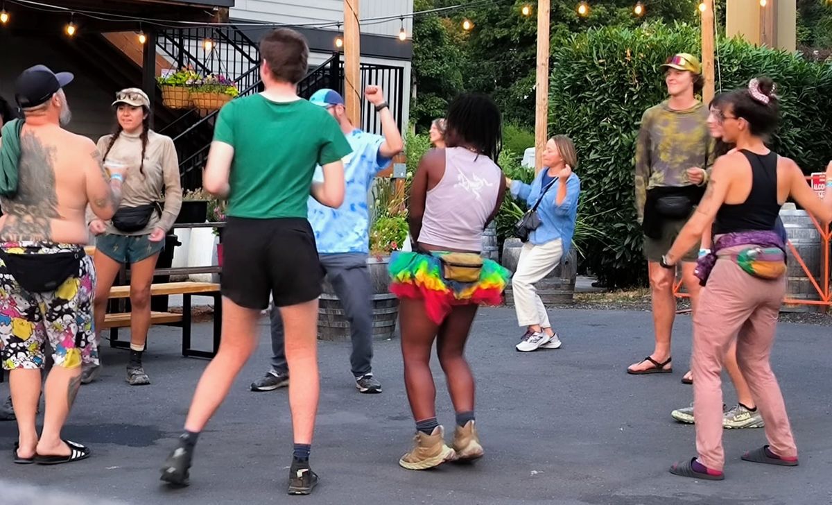 Mountain Dancer sehen wir abends in der Brauerei wieder, wo sie uns die geliehenen 40,- Dollar gleich in bar zurück gibt.