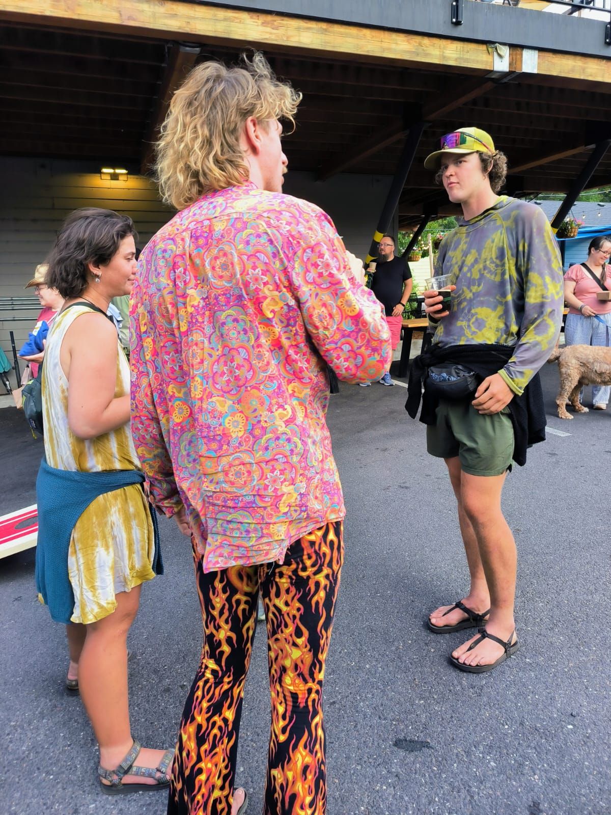 Wir schnacken lange mit den Leuten am Jolly Stand. Bei den AT Trail Days 2022 haben wir Hemden aus der 1. Kollektion gekauft. Hier am Eröffnungsabend gibt es nur zwei Modelle im Angebot mit 50 % Rabatt, aber diese beiden gefallen mir nicht. Wir werden uns morgen vielleicht etwas Schöneres aussuchen.