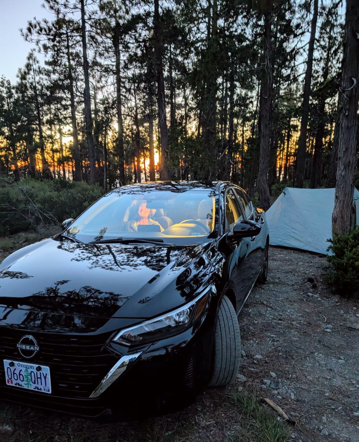 Ab 19.00 Uhr halten wir Ausschau nach einem geeigneten Platz für Zelt und Auto. Nicht ganz so einfach, denn wir sind ja nicht auf dem PCT. Viele Privat-Grundstücke und Verbotsschilder, direkt neben der Straße campen kommt auch nicht in Frage. Die Suche dauert etwas länger als auf dem Trail. Eine gute halbe Stunde gurken wir herum, bevor wir bei Horse Mountain eine einsame Stelle für unser Nachtlager finden.
