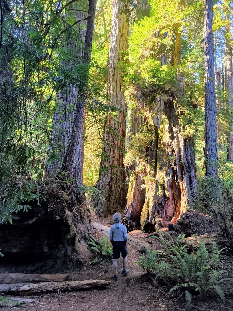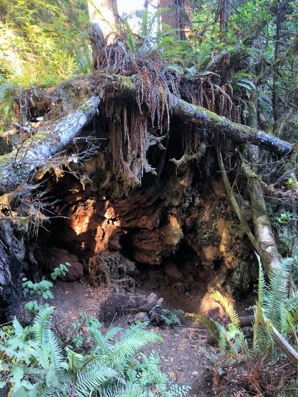 Wir fahren durch den Redwood Nationalpark und staunen über die Mammutbäume am Straßenrand. Beim Besucherzentrum halten wir an und machen einen kurzen Spaziergang hinein in den Urwald. Der Park liegt auf dem Land der Yurok-Indianer.