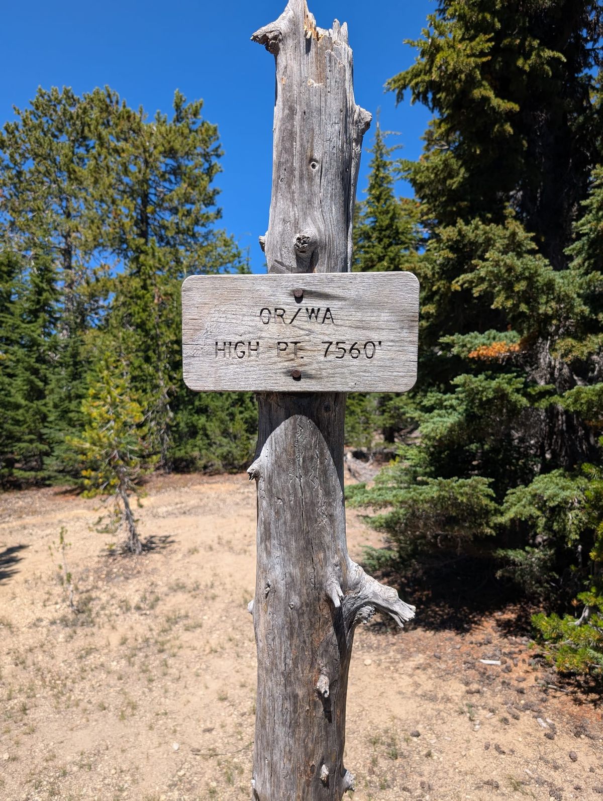 Mount Thielsen Wilderness steht auf dem Programm. Hier gibt es anscheinend Handy-Empfang. Uns kommen viele Hiker entgegen, die auf ihr Handy starren oder ihre Nachrichten an die Welt tippen. Wir kommen an einer Markierung vorbei : 3000 Kilometer. Die ist wohl von und für die NoBo Hiker. Bedeutet aber für uns im Umkehrschluss, dass noch 3000 Kilometer auf dem PCT vor uns liegen. Das wird dieses Jahr wohl nichts, die mexikanische Grenze muss wahrscheinlich bis zum nächsten Jahr auf uns warten.