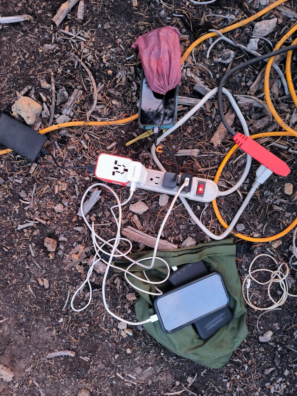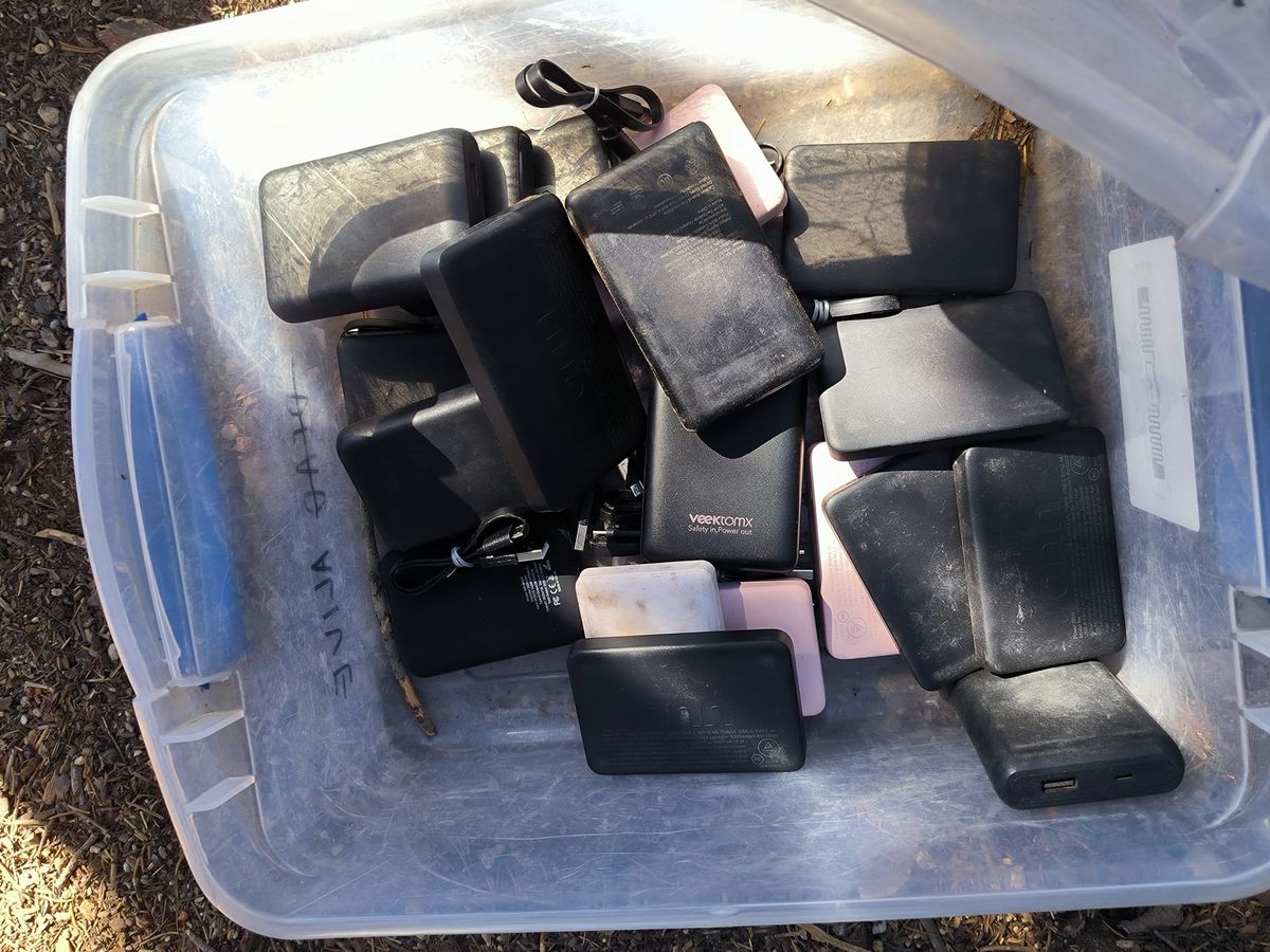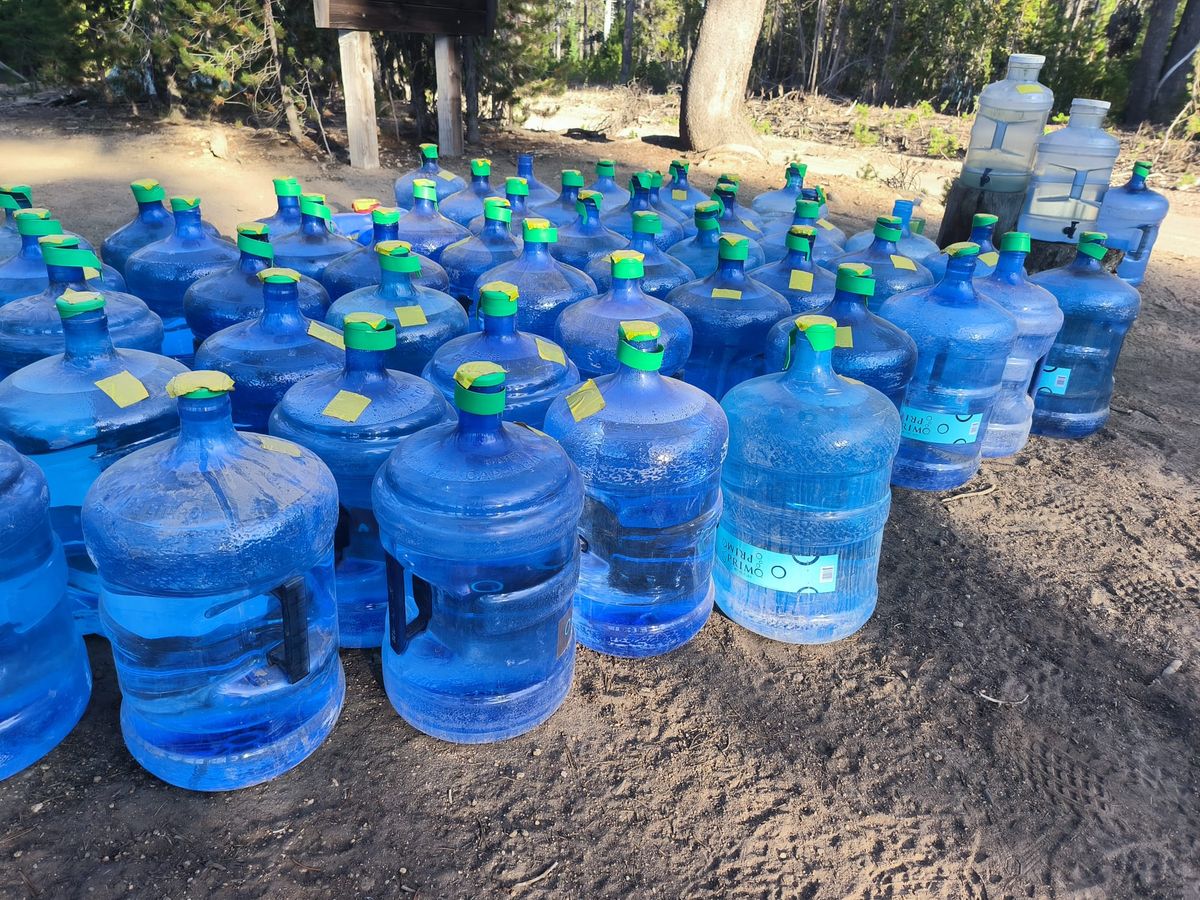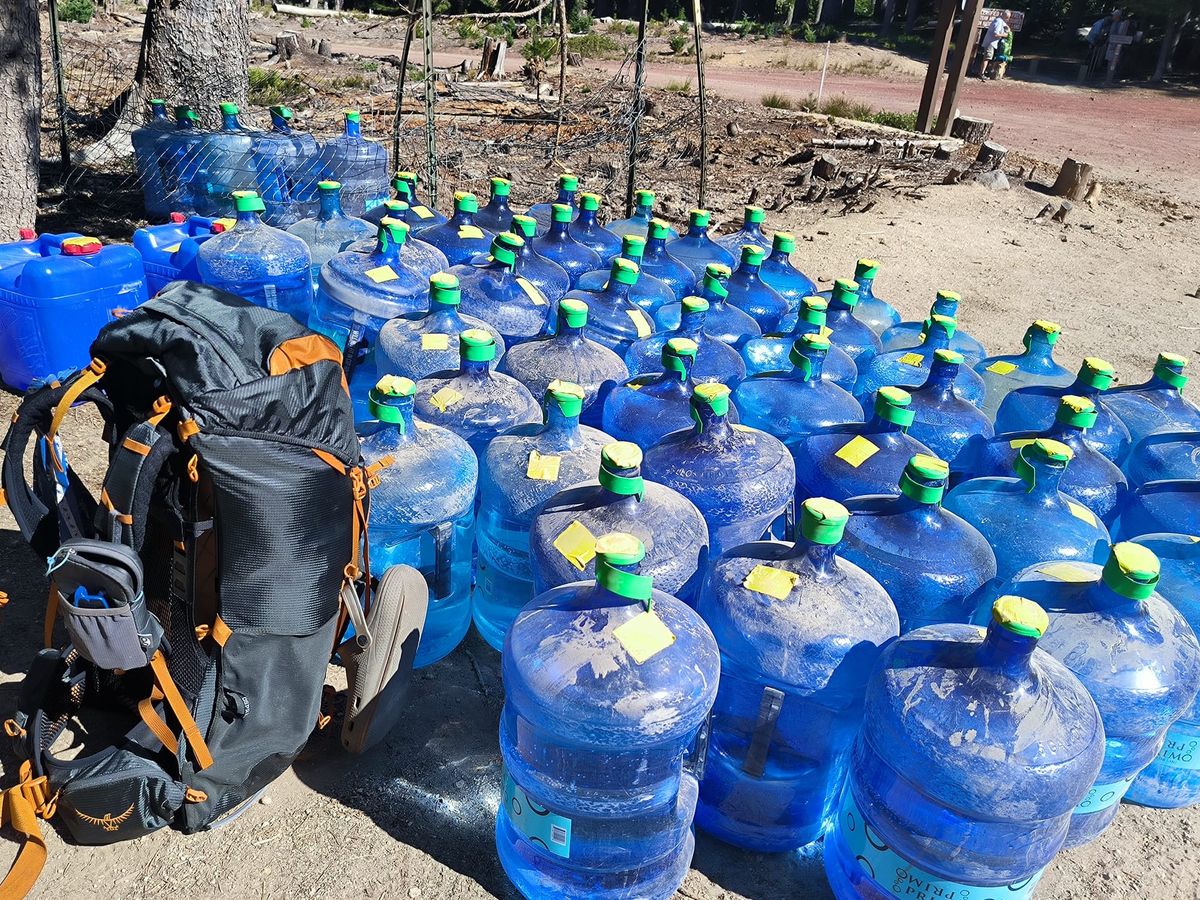 Überraschung ! An der Straße zum Windigo Pass wartet Trail Magic. Wasser, Wasser, Wasser ……. Und etwas ganz Besonderes : Kisten mit Batterien, Ladegeräten, Steckern. Etwa ein Dutzend NoBo Hiker hat es sich im Schatten gemütlich gemacht, um Handy und Powerbank zu laden. Zwei weitere Kisten sind gefüllt mit Toilettenpapier, Pflaster, Verbandszeug. Damenbinden, Schmerz- und Allergietabletten. Lauter nützliche Dinge für die kleinen Notfälle des Alltags.