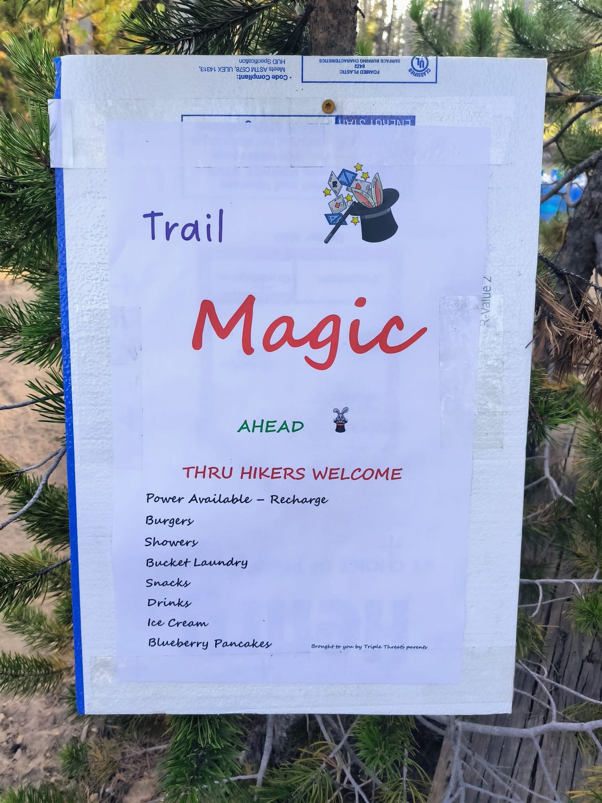 Wir bleiben 1,5 Stunden bei der Trail Magic. Mit 38,5 gelaufenen Kilometern dürfen wir uns einen frühen Feierabend leisten. Essen, Handy Laden, Dusche und kleine Wäsche im Eimer. Die meisten Hiker haben bereits ihr Zelt in der Nähe aufgeschlagen und bleiben über Nacht. Zum Frühstück soll es Pfannkuchen, Eiscreme und noch mehr leckere Sachen geben. Fällt schwer, darauf zu verzichten, aber wir möchten morgen früh los. Deswegen verabschieden wir uns gegen 20.00 Uhr und laufen nur noch ein kleines Stückchen weiter in den Wald hinein.