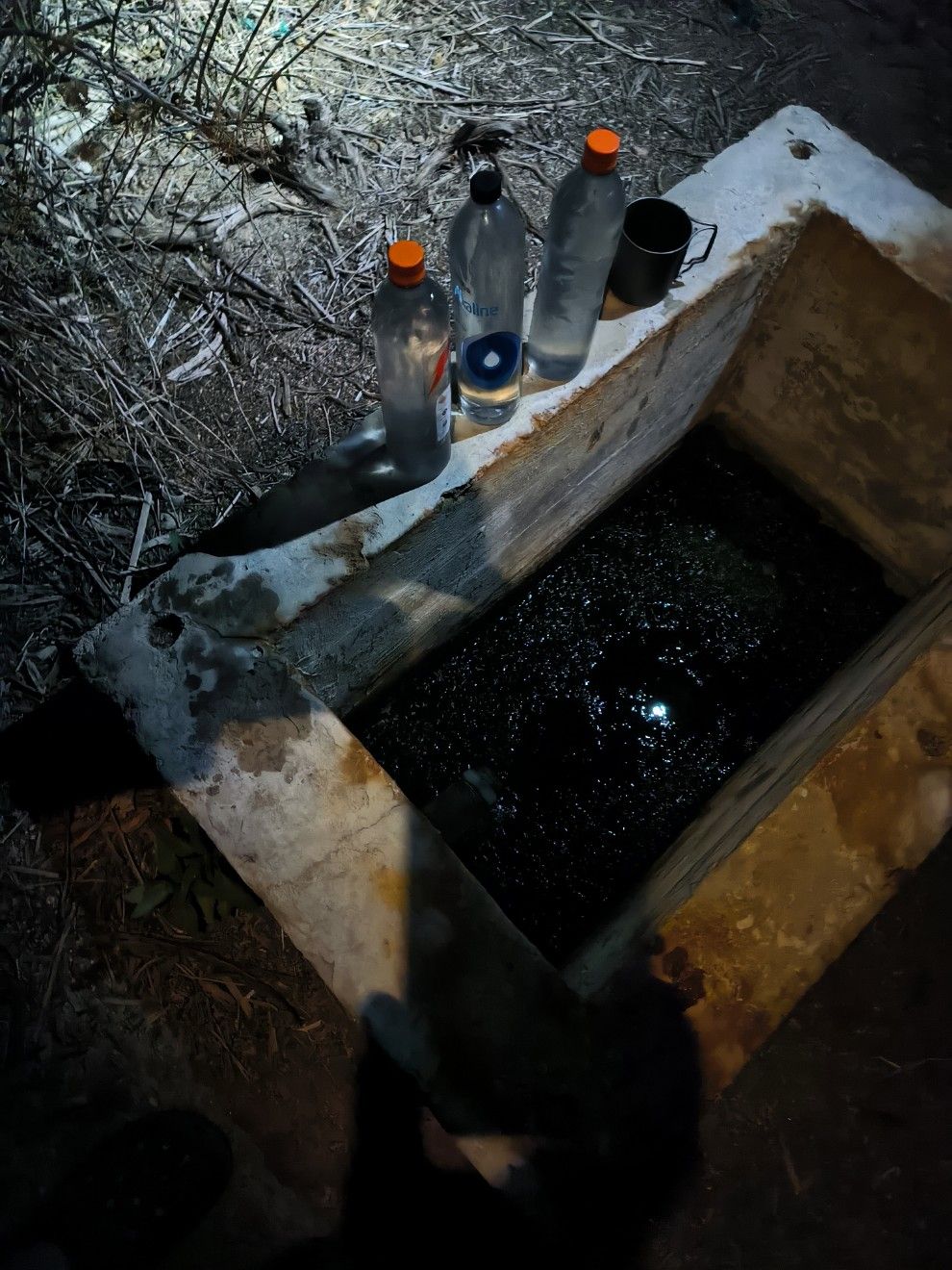 Eine Brücke führt über den Cottonwood Creek. Dahinter sollte unsere nächste Wasserquelle sein. Thomas findet die Wasserpumpe auch, aber anscheinend ist sie abgestellt. Er muss im Dunkeln den Hang hinunter turnen und Wasser aus dem Fluss holen. Sieht trübe aus, also unbedingt filtern vor dem Trinken. Eine Stunde laufen wir auf dem Aquädukt, einer viereckigen Betonröhre, wie auf einer Straße. Völlig verrückt ist die Vorstellung, dass hier so viel Wasser unter uns ist und nach Los Angeles geleitet wird, während die Hiker sich über jeden Tropfen Trinkwasser freuen würden. Das soll 32 Kilometer so gehen. Eine monotone Strecke und bei Sonnenschein sehr heiß, weswegen viele der jungen Leute diesen Teil über Nacht laufen. Um 22.00 Uhr finden wir einen geraden Platz etwas abseits vom Aquädukt. Feierabend. 1300 Höhenmeter Aufstieg und 1600 Abstieg. Perfekter Tag.