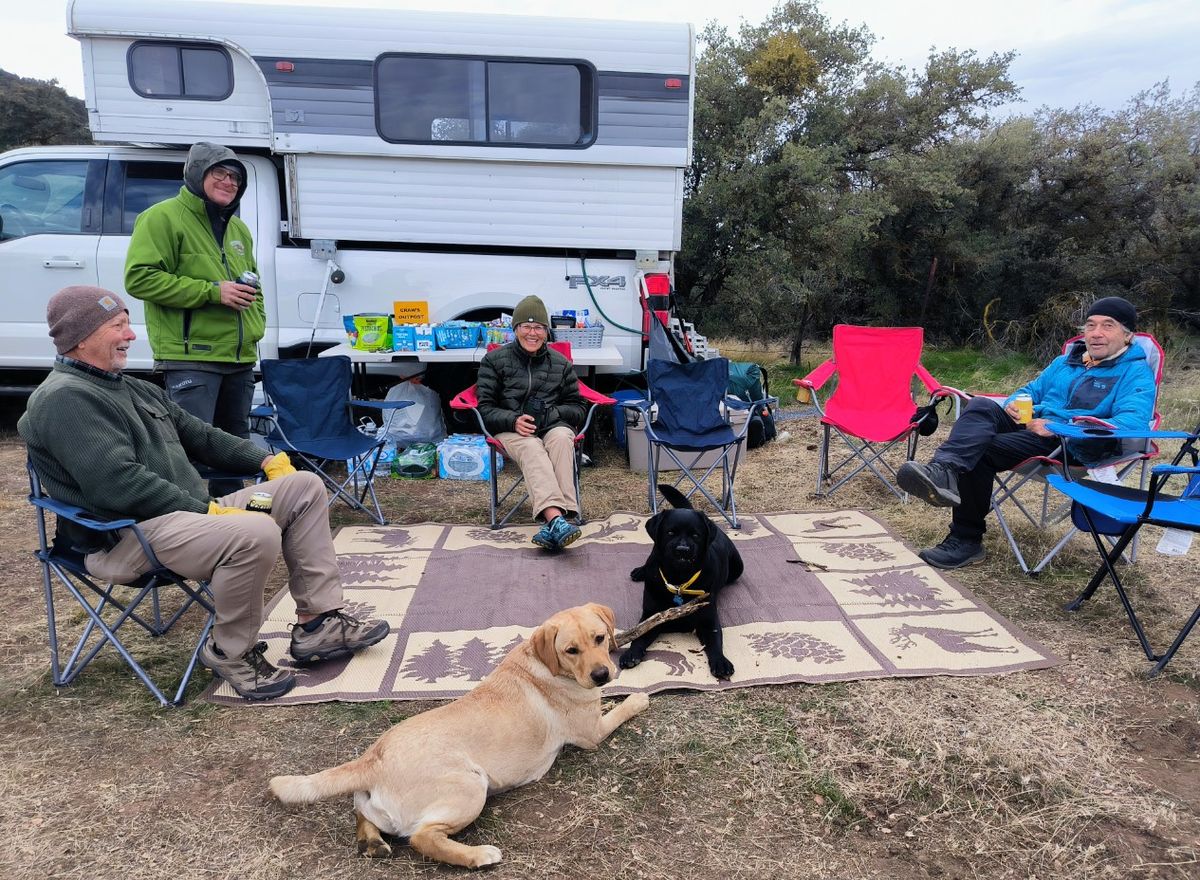 Ziel für die Nacht ist das Landers Camp, etwas abseits vom PCT gelegen. Es ist schon dunkel, als wir den Abzweiger erreichen. Etwa 500 Meter marschieren wir über eine festgefahrene Sandpiste. Schon von Weitem sehen wir Lichter. Wir sind nicht alleine. Unsere motorisierten „Freunde“ beenden anscheinend das Wochenende auf diesem Campingplatz. Da stehen etliche Wohnmobile, Jeeps mit Anhängern und Spaß-Fahrzeugen drauf. Überall rattern die Generatoren, und Musik dröhnt aus Lautsprechern. Ein großes Lagerfeuer wird entfacht, die Unterhaltung der Männer ist nicht gerade leise. Das könnte eine laute Nacht werden. Wie gut, dass wir abends so müde sind.