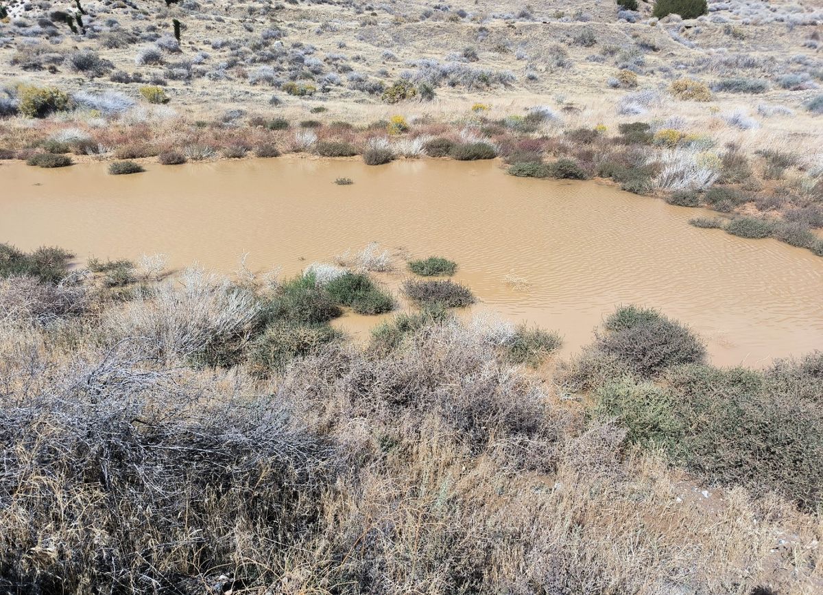 Nach über zwei Stunden Pause sind alle Schäden behoben, es kann weitergehen. Wir sind schon durch den Sand Canyon und Cameron Canyon, das Abendziel soll der Oak Creek Canyon in 13 Kilometern sein. Wieder vom Wasser bestimmt, anders funktioniert die Planung gerade nicht. Wir hoffen darauf, dass Trail Angel nachfüllen, wenn das Depot leer ist. Bis dahin führt ein schmaler Weg durch das Gebiet der Windkraft-Anlagen. Es geht über jeden Hügel, anscheinend auch Weideland, denn wir öffnen und schließen unzählige Gatter. In der Ferne sehen wir hohe Berge, wo erstaunlich viel Neuschnee auf den Gipfel liegt. Am Oak Creek Canyon finden wir ca. 20 Behälter mit Trinkwasser, dazu wieder Limonaden-Pulver, einen Müllsack, Picknicktisch und zwei Stühle. Genial. Daneben ist Platz für ein Zelt. Schon nach 18.00 Uhr, da können wir gleich bleiben. Es wird bestimmt keine stille Nacht, umgeben von Wind-Turbinen und den Verkehrsgeräuschen der nahen Straße.