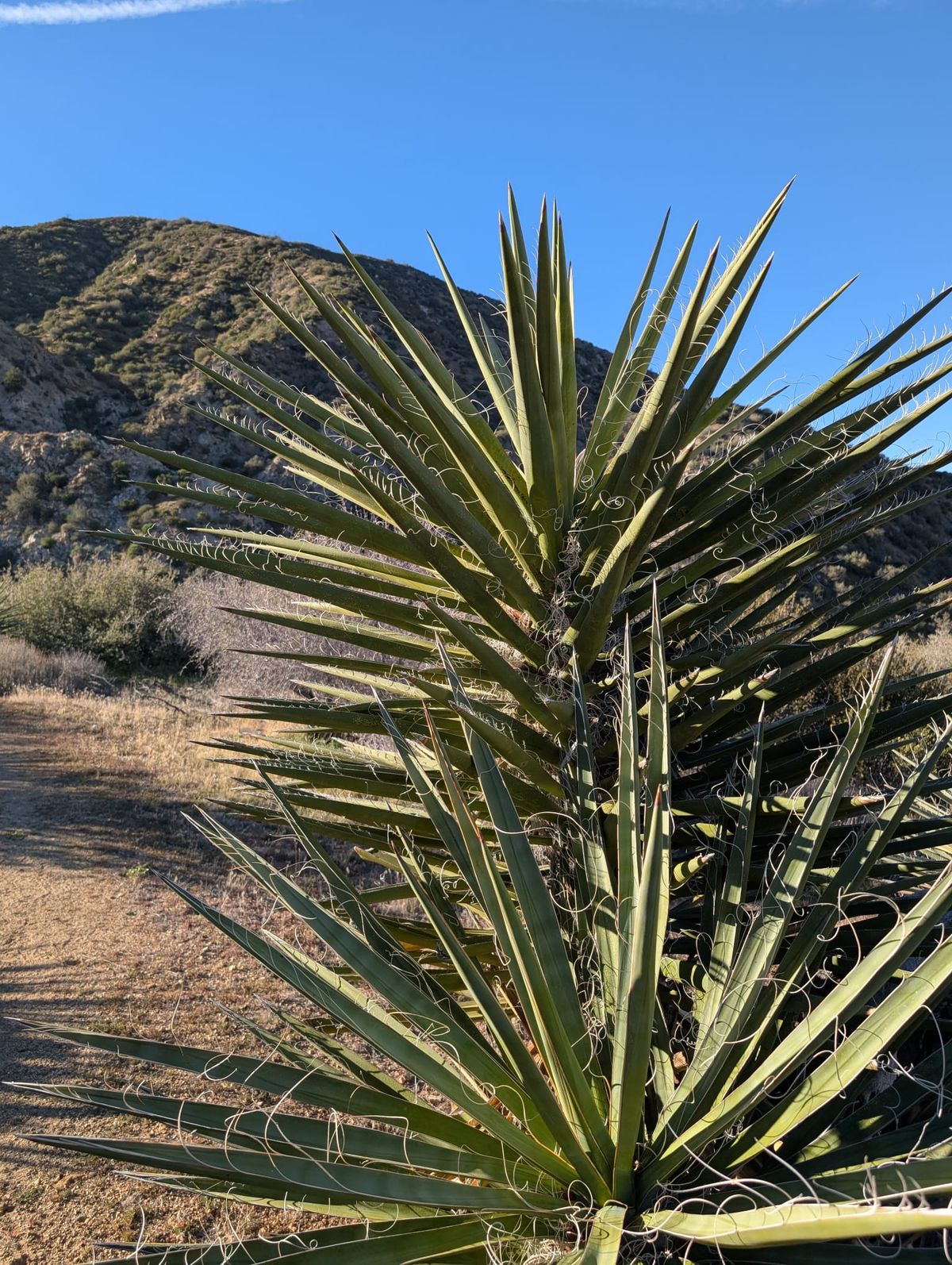 Laut Wetterbericht haben wir jeden Tag 10 Stunden Sonne zu erwarten – das wäre dann von 8.00 Uhr bis 18.00 Uhr. Kein Tropfen Regen. Es bleibt trocken und staubig. Der neue Abschnitt beginnt mit 6 Kilometern und 600 Höhenmetern Aufstieg über den Acorn Trail. Um 12.00 Uhr sind wir zurück auf dem PCT. Einfacher Weg, zumeist bergab. Schnelles Vorwärtskommen. Ich frage mich, ob diese Gegend im Frühjahr oder Sommer etwas attraktiver aussieht. Vielleicht ein bisschen mehr Grün oder ein paar blühende Pflanzen ? Wir sehen zwei Kolibris. Die sind ja unheimlich niedlich, diese Zwerge. Aber das war’s dann auch. Sonst nichts. Langweilig. Süd-Kalifornien gehört nicht zu unseren Favoriten.