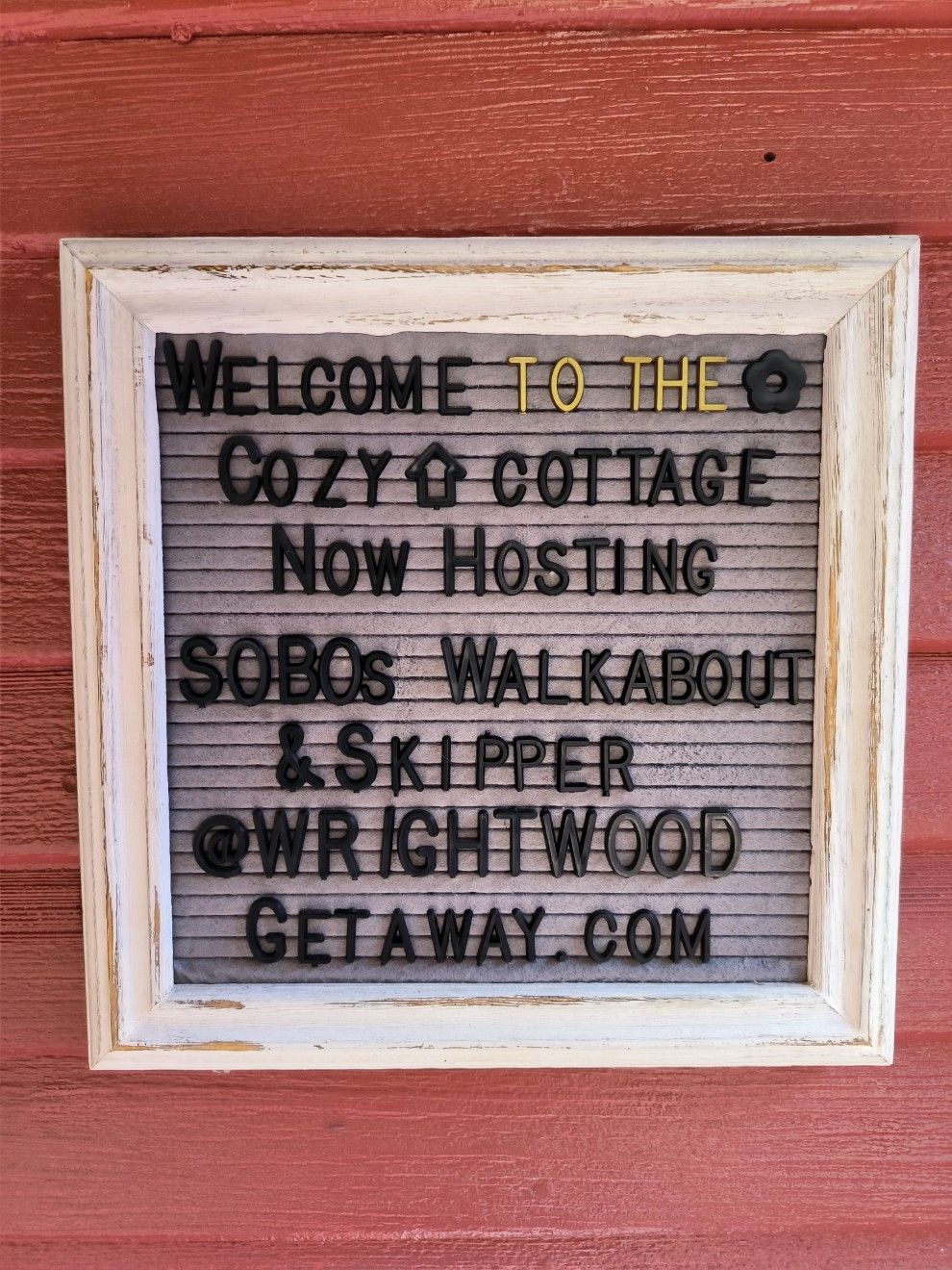 Wir haben uns sehr wohl gefühlt im Cozy Cottage von „Pyjama Mama“. Sie kennt die Bedürfnisse der Hiker und hält so manche Aufmerksamkeiten bereit. Vor der Eingangstür an der Wand haben wir ein Schild entdeckt, auf dem unsere Trail-Namen stehen. Kleine Ursache, große Wirkung. Ein herzliches Willkommen ! Wir freuen uns sehr darüber.